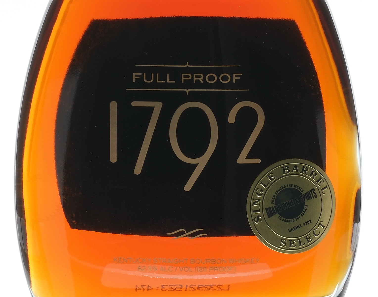 Selection by Grand Wine & Spirits (Barrel #202). Full Proof (125 Proof). 62.5% ALC/VOL. Plastic seal intact. Labels excellent. Whiskey Bourbon Barton 1792 USA Kentucky 2023 1 750ml