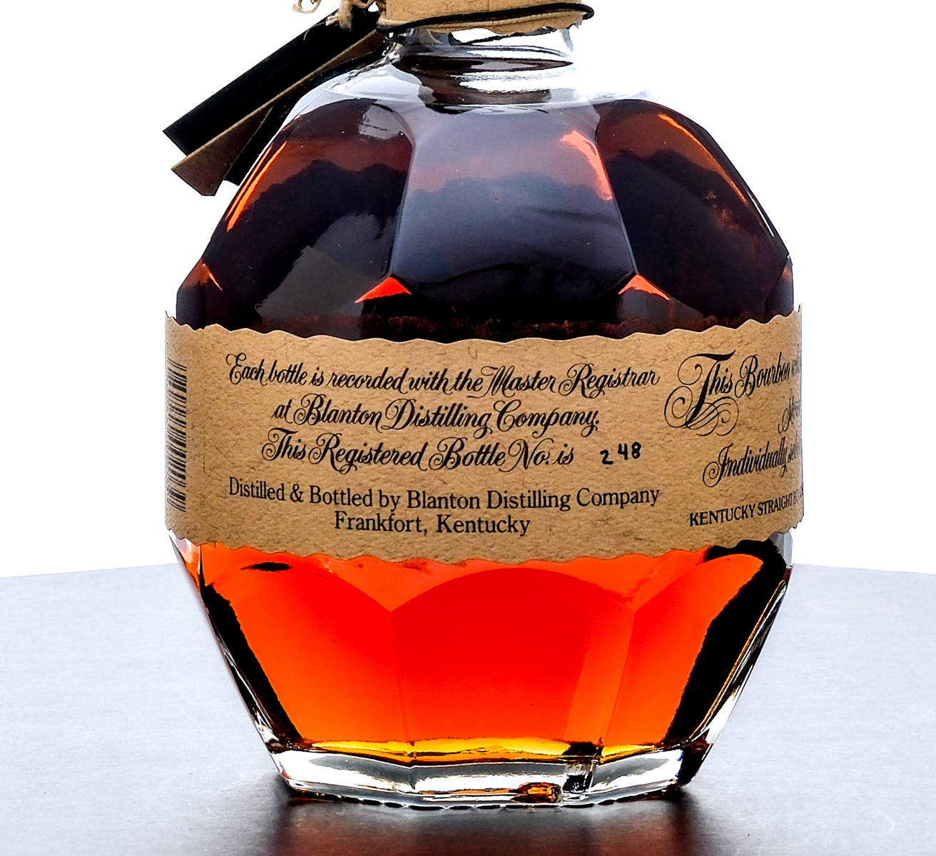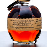 Blanton’s Single Barrel Bourbon Whiskey (2024). Dumped on 5-14-24 from Barrel No. 284. Stored in Warehouse H on Rick No. 13. Bottle 248. 61.2% ALC/VOL (122.4 Proof). Sazerac Barrel Select, Charlton Webster Spencer Barrel # 284. Cardboard box good, exhibiting some minor creasing with some minor tearing in the jockey and horse stable area of the inner lid. Included drawstring bag excellent. Wax seal on bottle intact. Two hangtags intact. Printed labels excellent. Racehorse and jockey “T” figure on cork top pristine. 750ml. Distilled & bottled by Blanton Distilling Company.