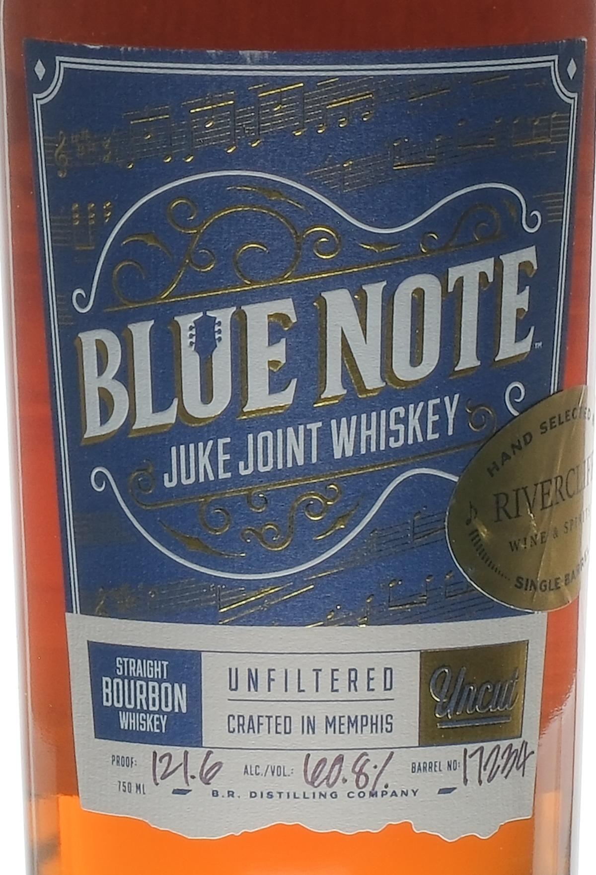 Single barrel hand selected by Rivercliff Wine & Spirits. Barrel No: 17234. Unfiltered. Uncut. Proof: 121.6%. ALC/VOL: 60.8%. Seals intact. Labels very good (some contact wear to the front and a single nick evident on the back). Whiskey Bourbon B.R. Distilling USA Tennessee 2023 1 750ml