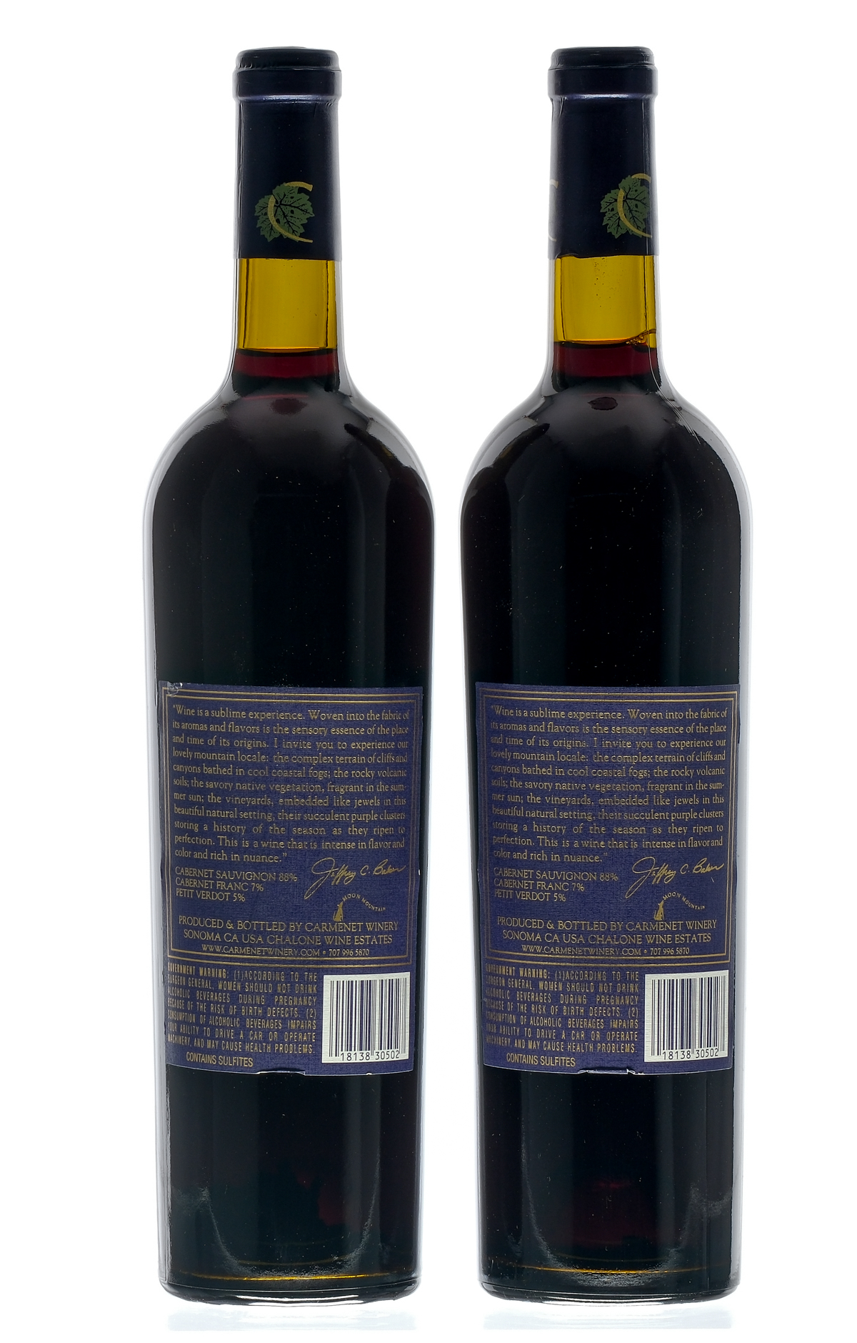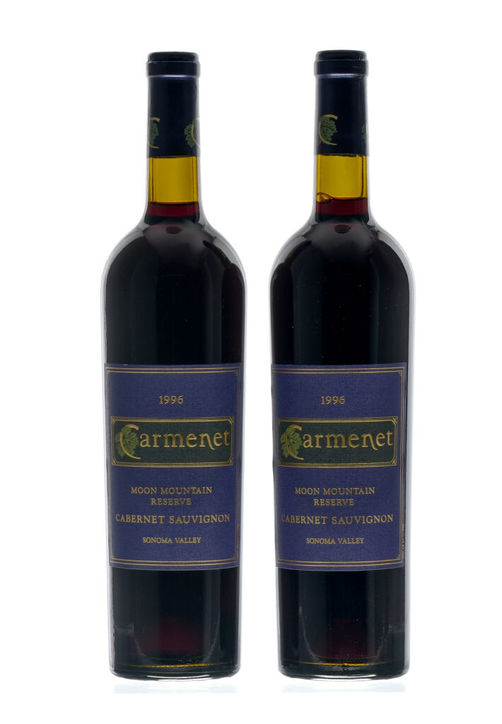 Moon Mountain Reserve. Fill Level = Base Neck. Labels VG. Wine California Carmenet Vineyards USA Sonoma Valley Cabernet Sauvignon 1996 2 750ml
