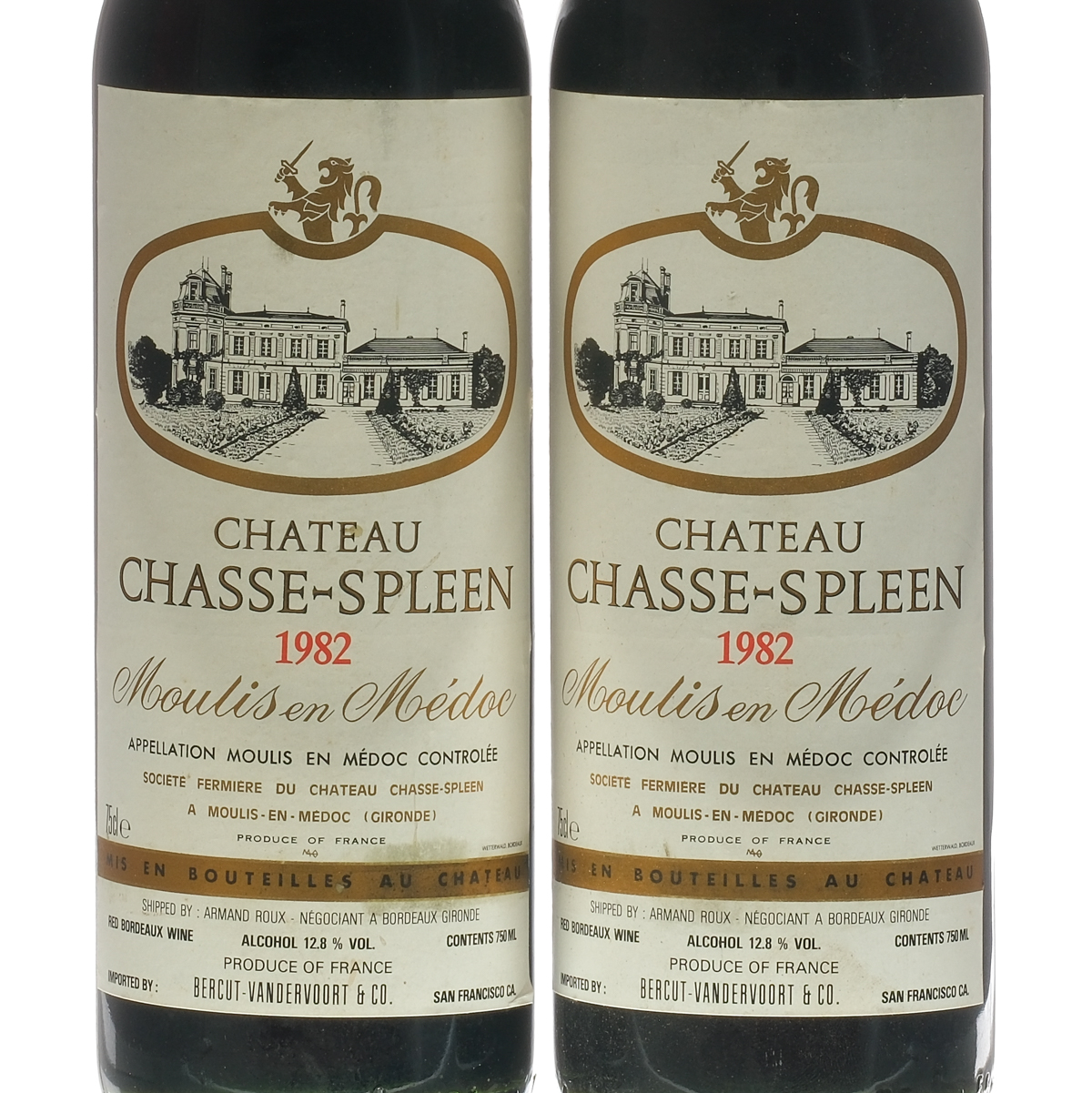 Cork raised. Fill Level = Base Neck. Labels excellent. Wine Bordeaux Chateau Chasse-Spleen France Bordeaux Moulis-en-Medoc (Gironde) 1982 2 750ml