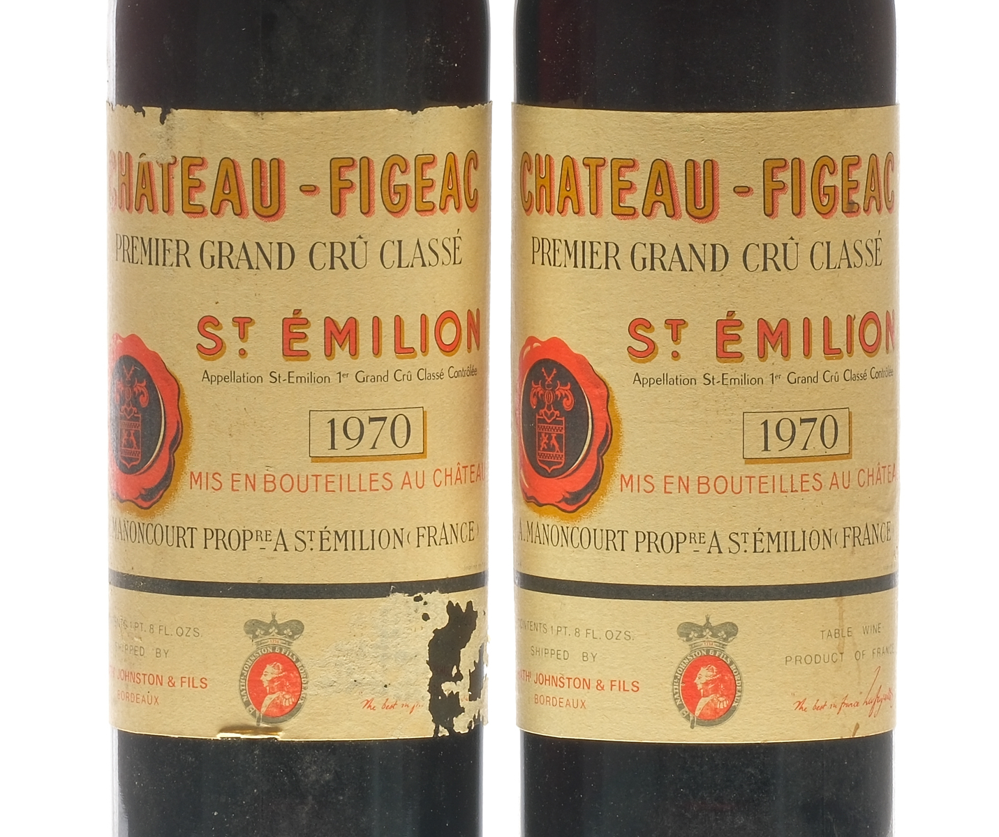Premiere Grand Cru Classe.Fill Level = Base Neck. One label in very good condition, the other worming. Wine Saint-Emilion Chateau-Figeac France Saint-Emilion 1970 2 750ml