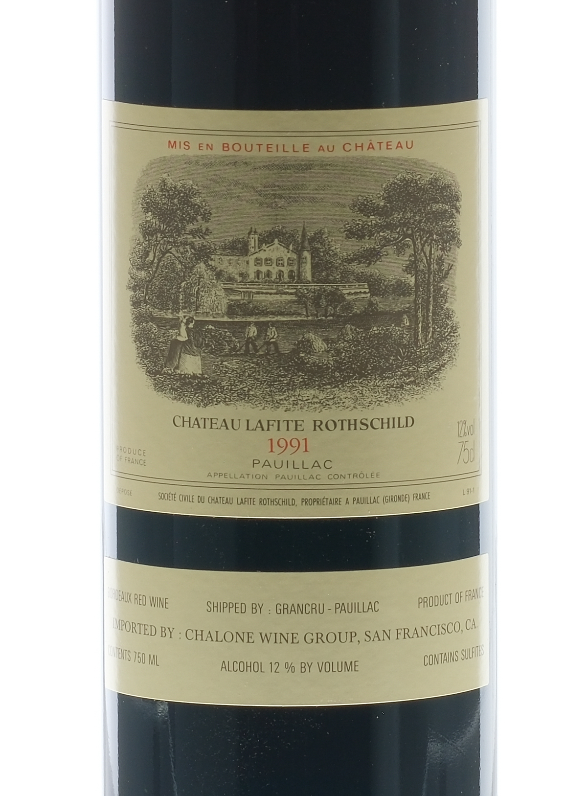 Fill Level = Mid Neck. Labels excellent. Sediment in neck. Paper present in poor condition. Wine Bordeaux Pauillac Chateau Lafite Rothschild France Bordeaux Pauillac 1991 1 750ml