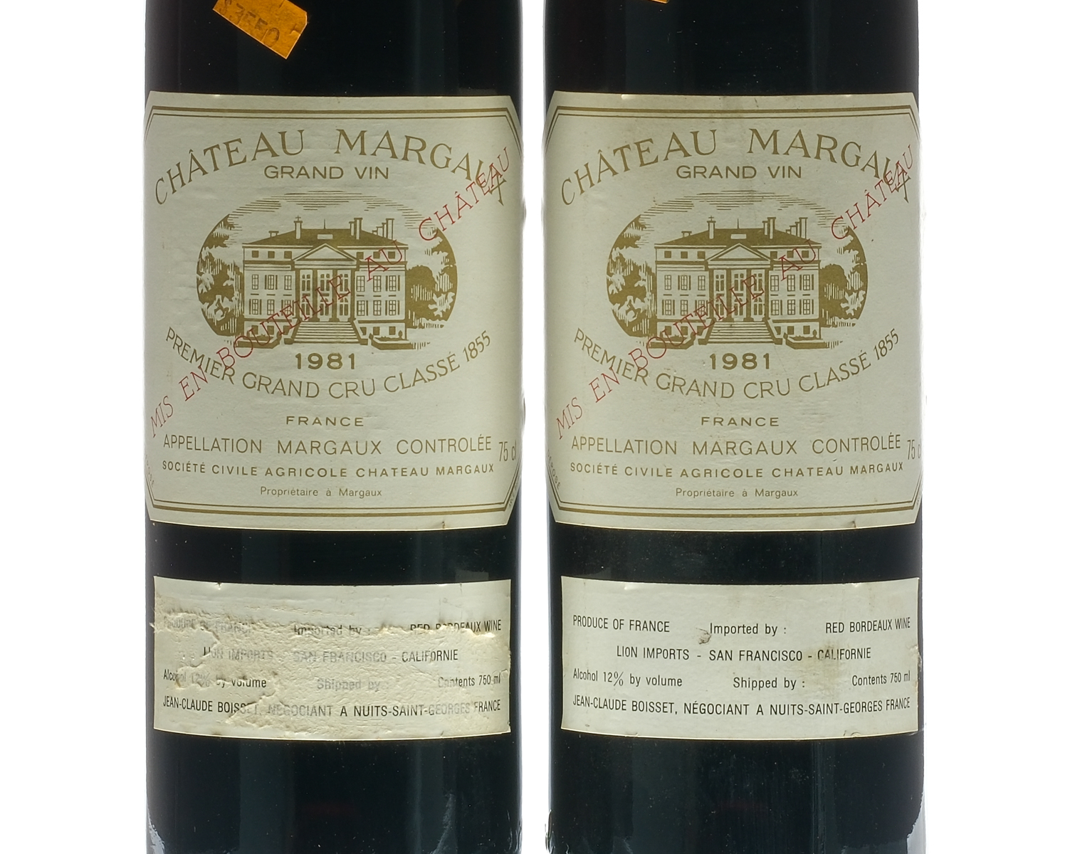 Premiere grand cru classe. Fill Level = Top Shoulder. Labels in very good condition. Impor labels exhibit some wear. Wine Bordeaux Margaux Chateau Margaux France Bordeaux Margaux 1981 2 750ml