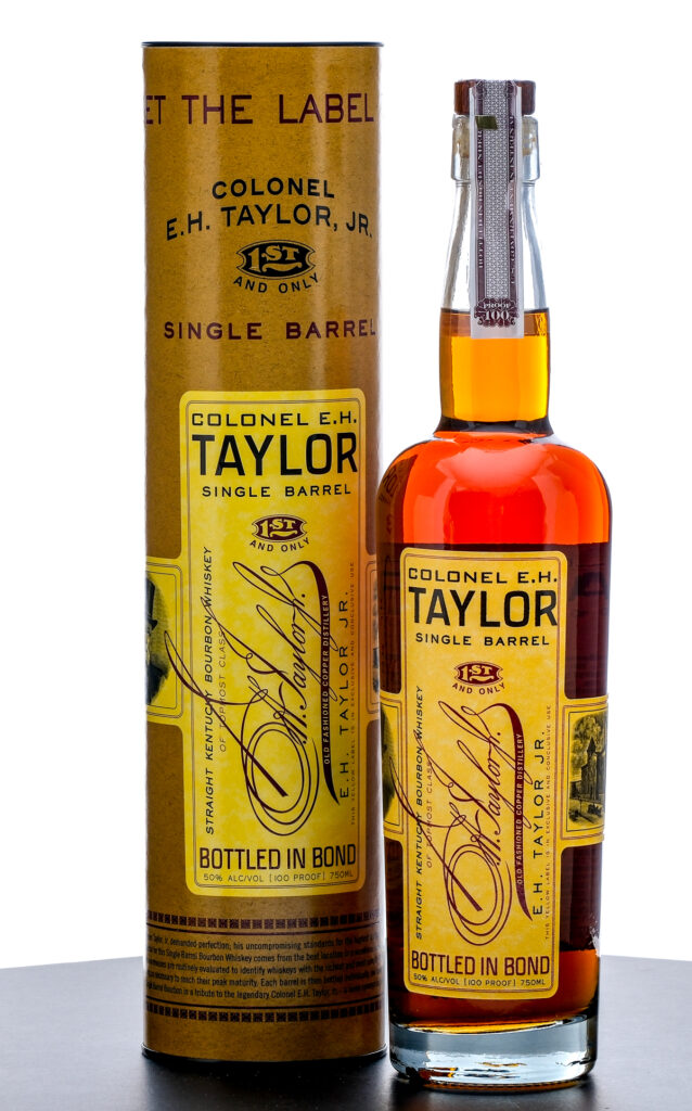 Colonel E. H. Taylor Single Barrel Bottled in Bond Straight Kentucky Bourbon Whiskey (2023). Laser Code: L230530102:01K. 50% ALC/VOL (100 Proof). Cardboard tube very good. Plastic and stamp seal on bottle intact. Printed labels excellent. 750ml. Distilled, aged and bottled by Old Fashioned Copper Distillery.