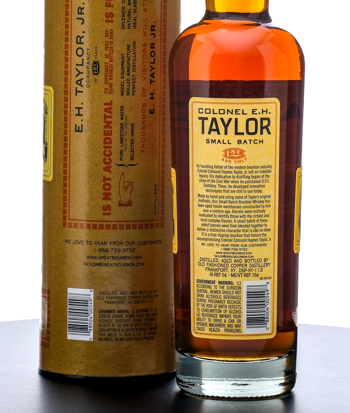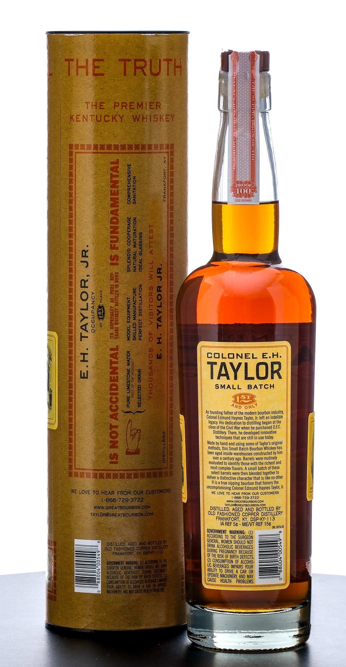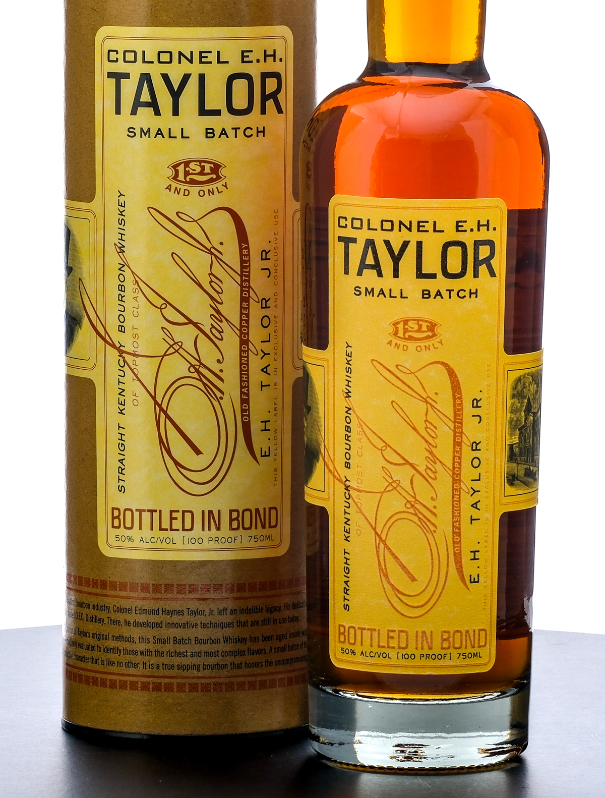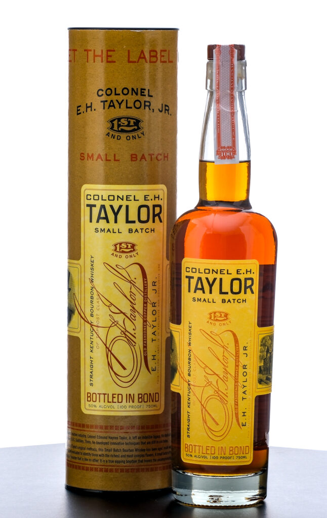 Colonel E.H. Taylor Small Batch Kentucky Straight Bourbon Whiskey (Possibly 2024, beginning of laser code missing). Bottled In Bond. Laser Code: ??4205 01 09.37D. 50% ALC/VOL (100 Proof). Cardboard tube in excellent condition, Plastic and stamp seal intact. Printed labels excellent. 750ml. Distilled, Aged and Bottled by Old Fashioned Copper Distillery.