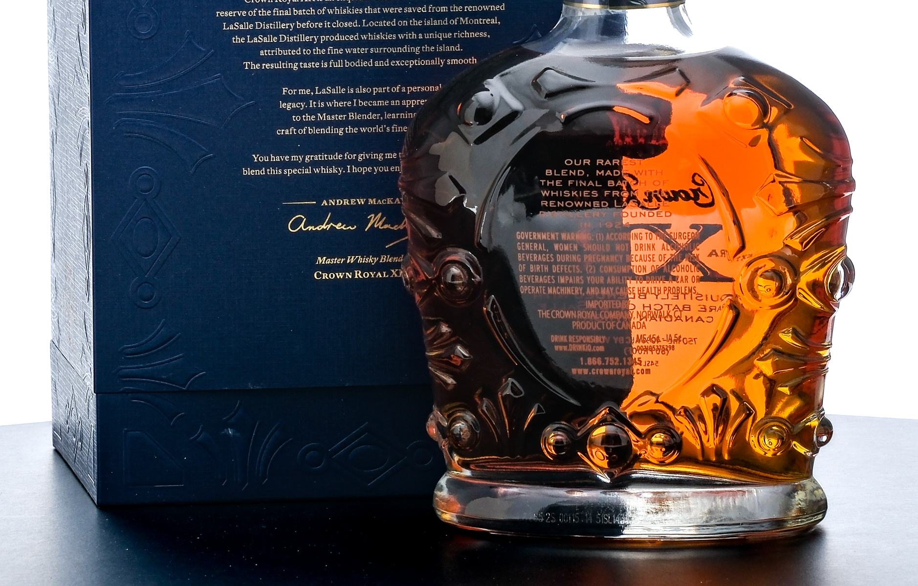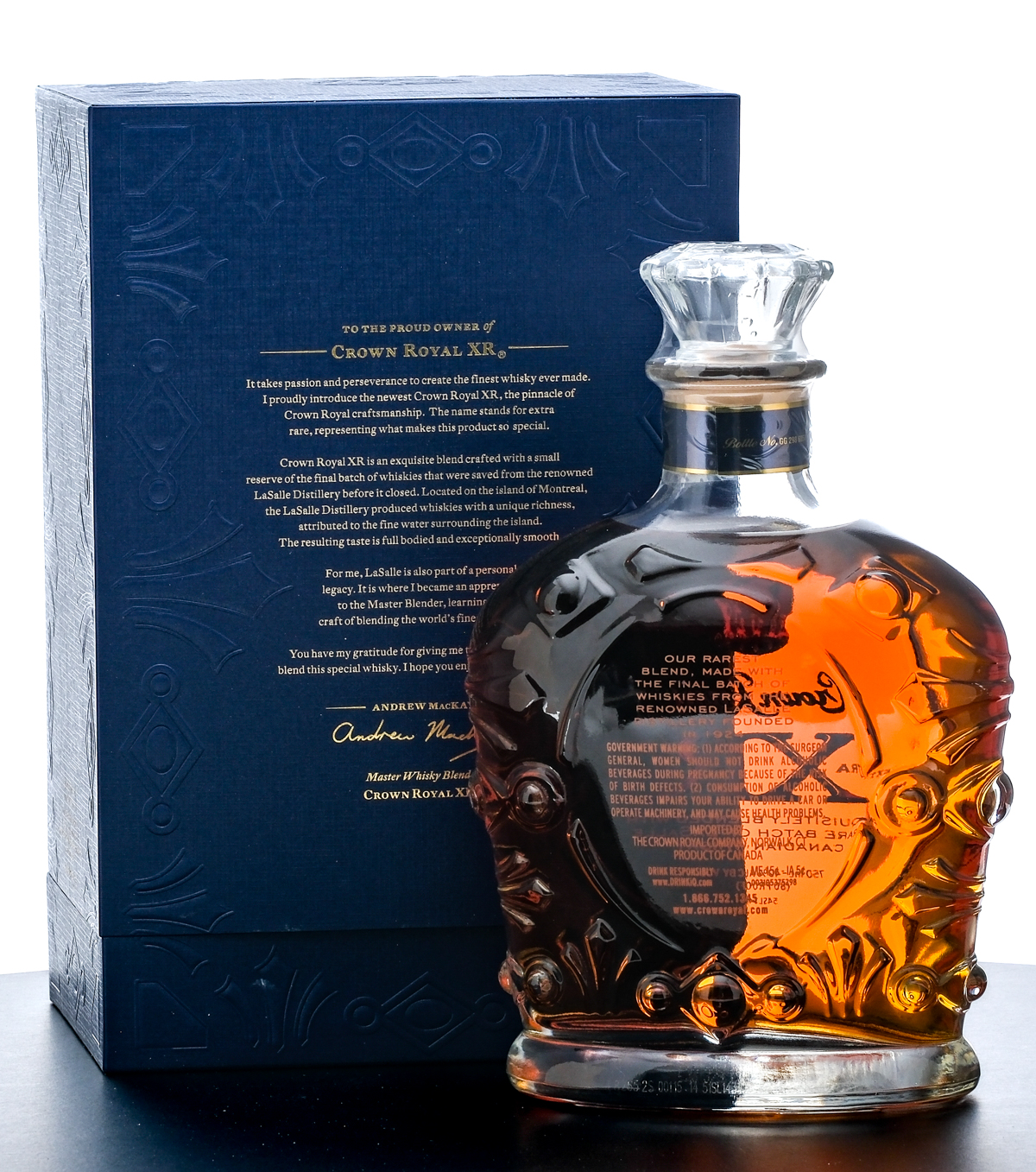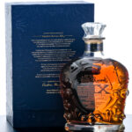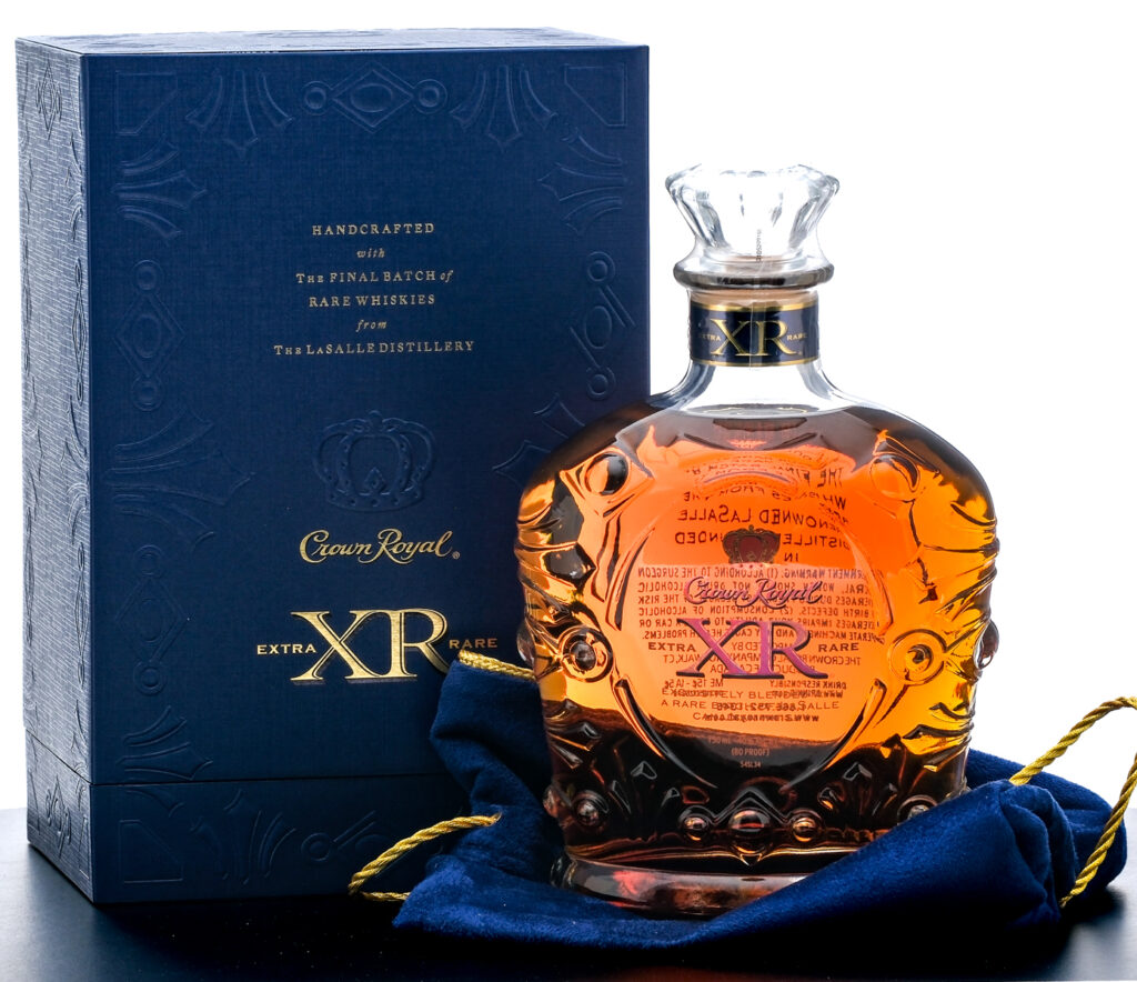 Blended Canadian Whiskey. Handcrafted with the final batch of rare Whiskies from The LaSalle Distillery. 40% ALC/VOL (80 Proof). Cardboard presentation box and slip and bow tied ribbon in very good condition (some dings and standard shelf wear evident). Plastic seal on bottle intact. Labels excellent. Housed within drawstring bag embroidered with the Crown Royal logo in excellent condition. 750ml. The Crown Royal Company