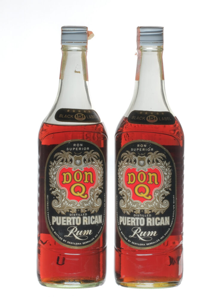 Estate Dusty Bottles 151 Proof. Bottle stamps are intact though they do exhibit losses and general degradation. Labels are very good overall but likewise exhibit losses (and loosening from the bottle). Rum Destileria Serralles USA Puerto Rico 2 4/5 Qt.