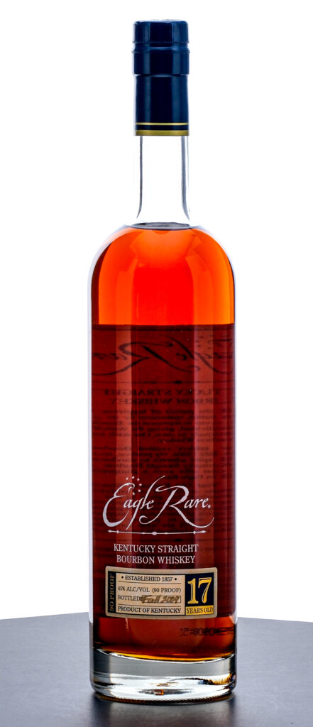 From The Collection of Michael Aronoff: Eagle Rare 17 Year Kentucky Straight Bourbon Whiskey. Bottled: Fall 2009. 45% ALC/VOL (90 Proof). Foil seal very excellent. Printed and screened labels excellent. 750ml. Distilled, aged, & bottled by Old Prentice Company, Frankfort, KY.