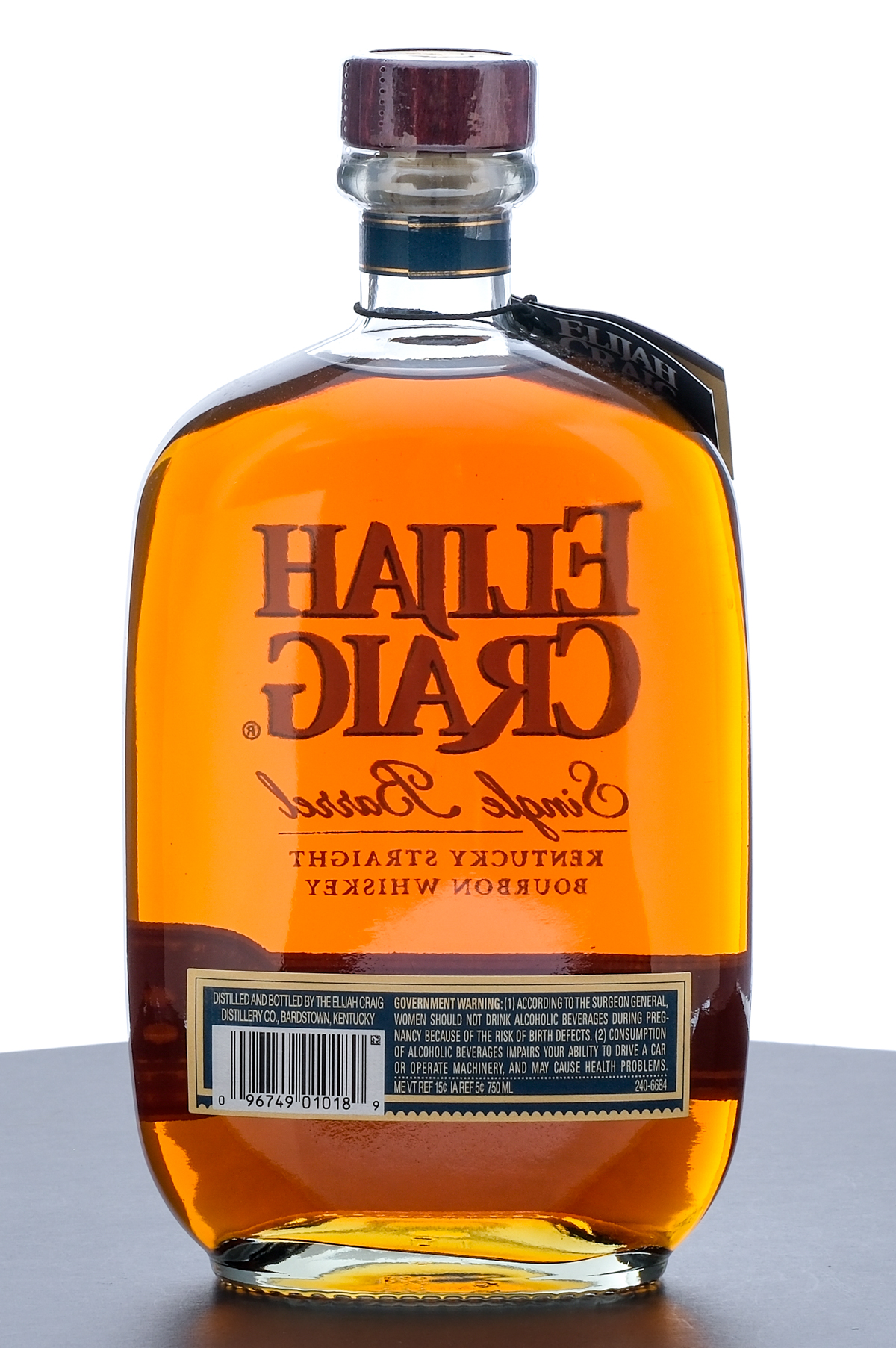 Elijah Craig 18 Year Single Barrel Kentucky Straight Bourbon Whiskey. Bottled: 8.8.24. Barrel 6961. 45% ALC/VOL. Plastic seal and hang tag intact. Screened and printed labels excellent. 750ml. Distilled and bottled by The Elijah Craig Distillery Co.