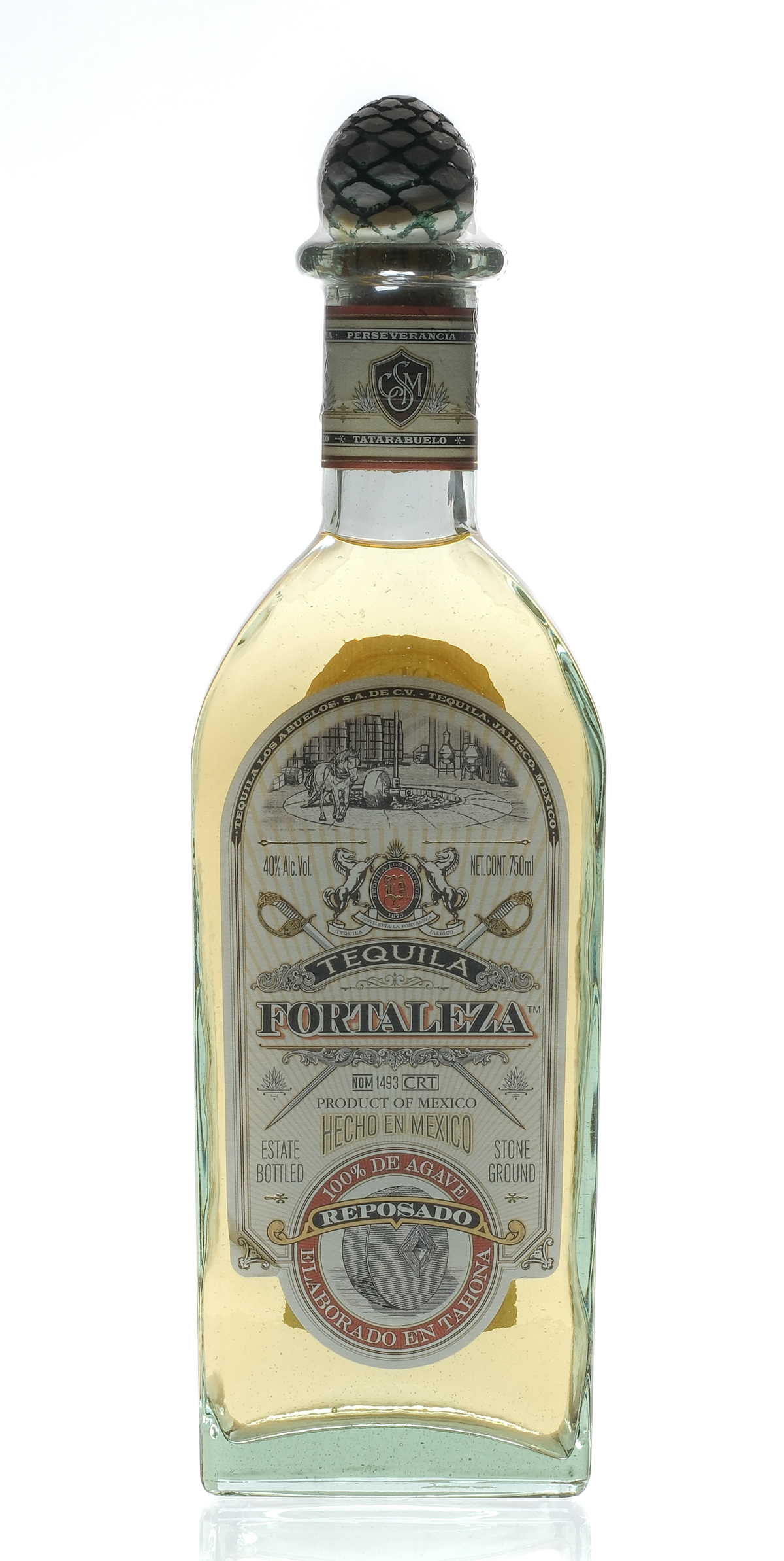 Lote 115-R. 40% ALC/VOL. Plastic seal intact. Labels very good (there is a small tear on the front facing label). Painted ceramic agave figure on cork top is excellent. Tequila Reposado Forteleza Mexico 1 750ml