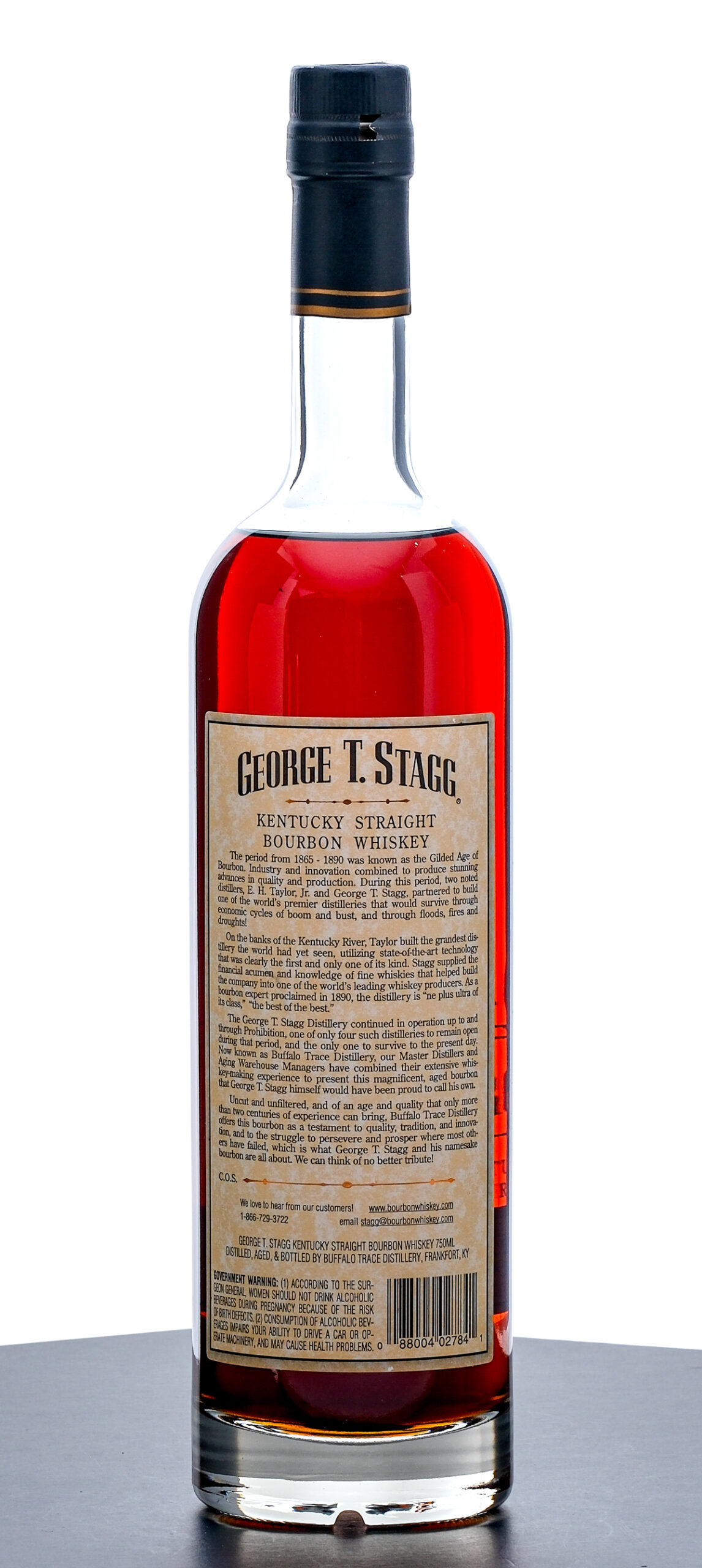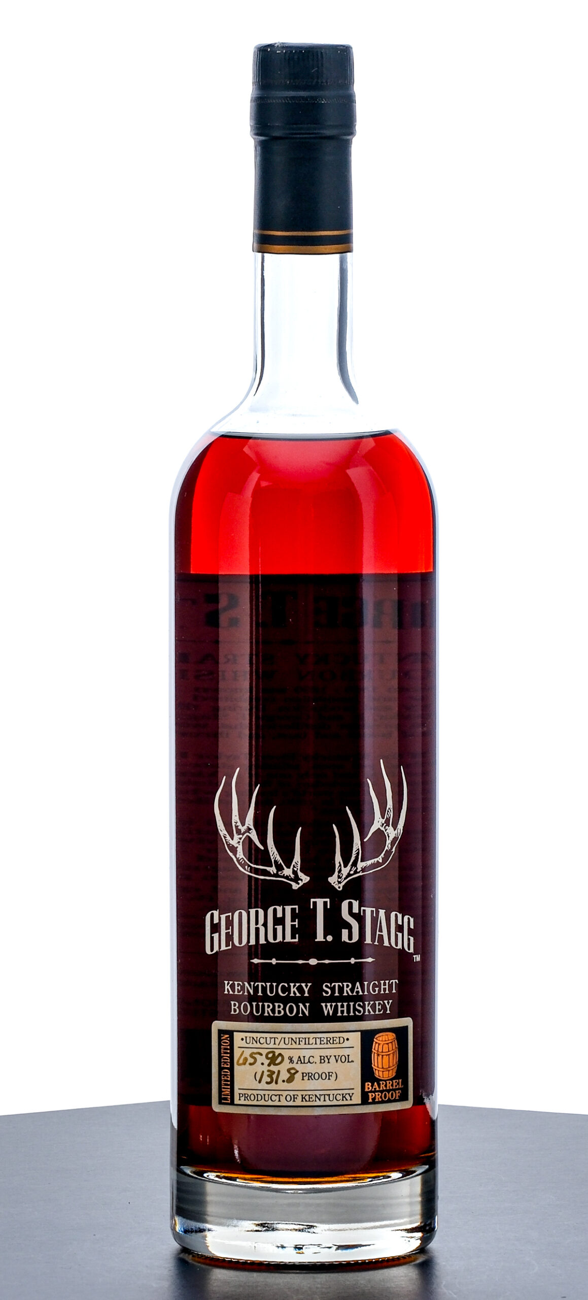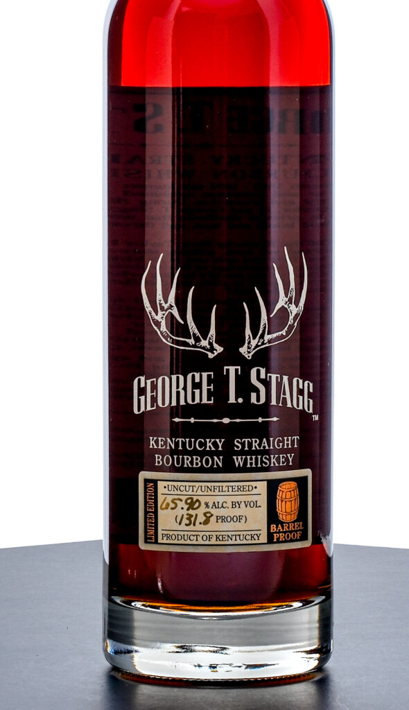 From The Collection of Michael Aronoff: George T. Stagg 15 Year Limited Edition Barrel Proof Kentucky Straight Bourbon Whiskey. Spring 2005. Lot B. 65.90% ALC/VOL (131.8 Proof). Foil excellent. Screened and printed labels likewise excellent. 750ml. Distilled, aged & bottled by Buffalo Trace Distillery.