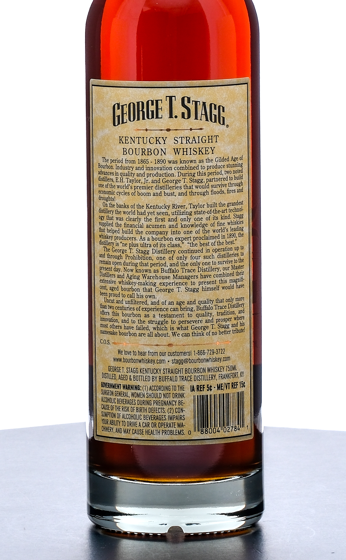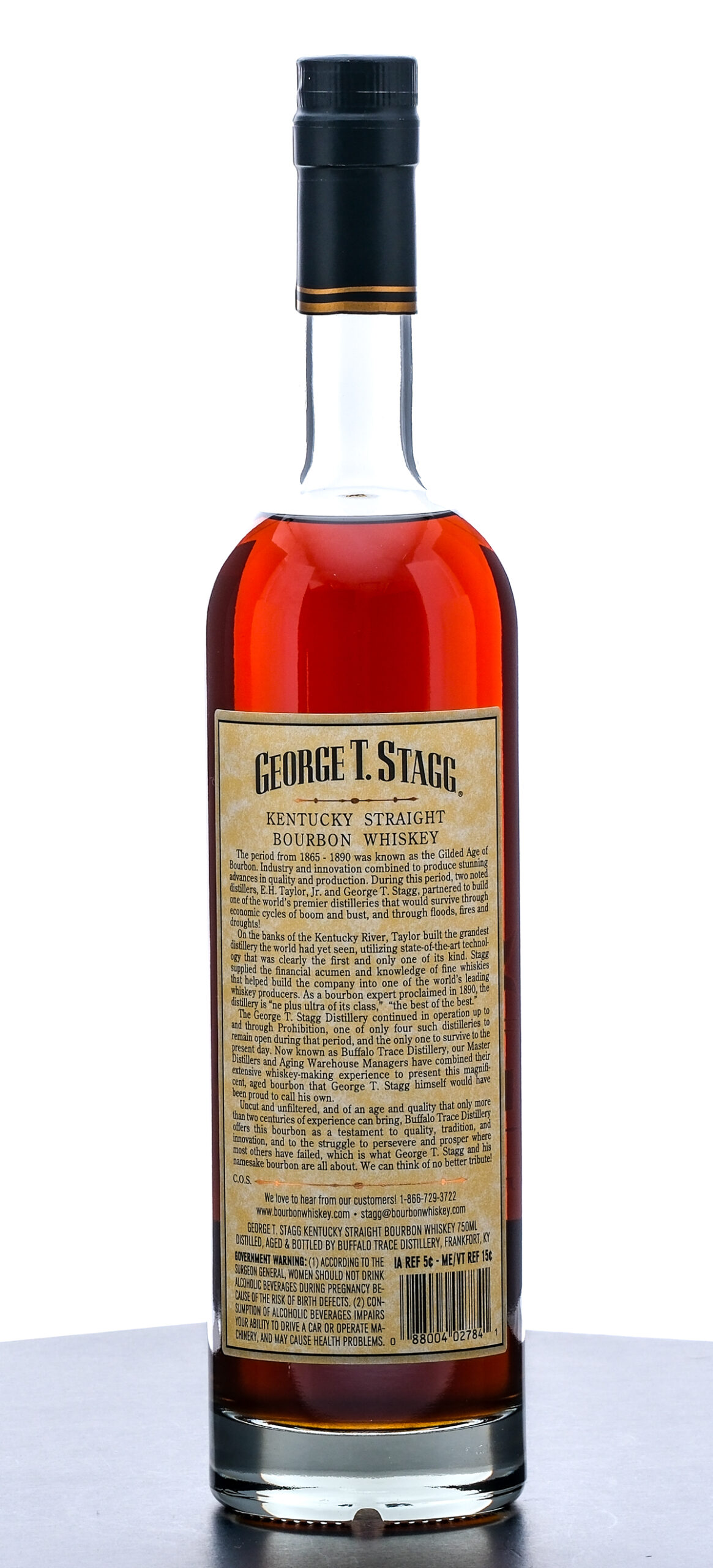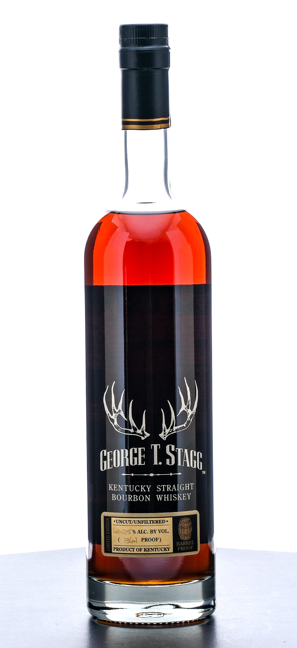 George T. Stagg Barrel Proof Kentucky Straight Bourbon Whiskey (2024). Limited Edition. Laser Code: L2464 01 18:48D 68.05% ALC/VOL (136.1 Proof). Foil excellent. Screened and printed labels likewise excellent. This bottle is also accompanied with manufacturer branded tissue paper. 750ml. Distilled, aged & bottled by Buffalo Trace Distillery.