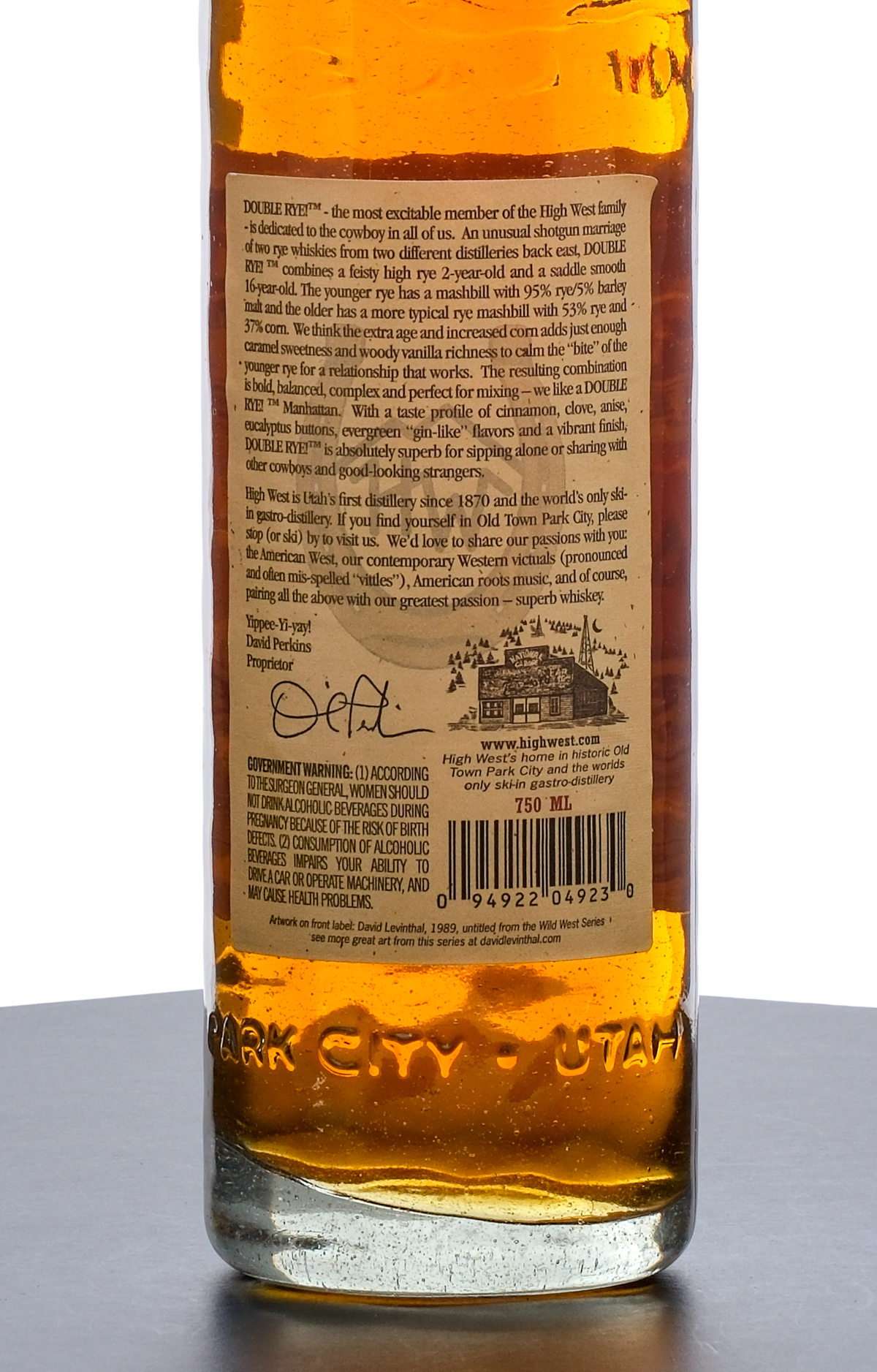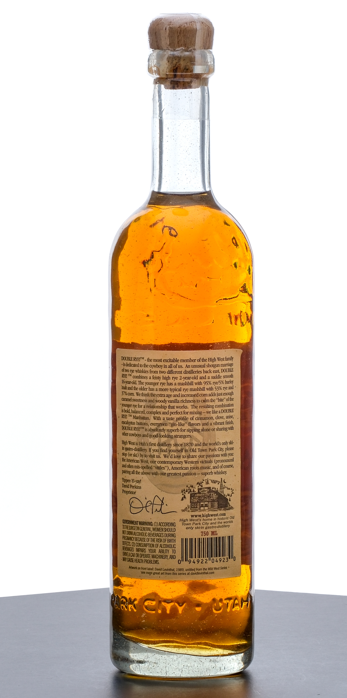 From The Collection of Michael Aronoff: High West Whiskey Double Rye! A blend of Straight Rye Whiskies (2013). Batch Number: 13B06. Bottle Number: 338. 46% ALC/VOL (92 Proof). Plastic seal intact. Printed label very good (some lifting at one end). 750ml. Bottled by High West Distillery, Park City, Utah at DSP-UT-15001