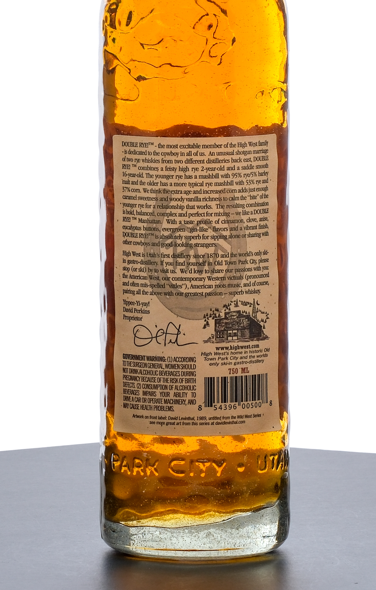 From The Collection of Michael Aronoff: High West Whiskey Double Rye! A blend of Straight Rye Whiskies (2015). Batch Number: 15E14. Bottle Number: 2683. 46% ALC/VOL (92 Proof). Plastic seal intact. Printed label very good (some lifting at one end). 750ml. Bottled by High West Distillery, Park City, Utah at DSP-UT-15001