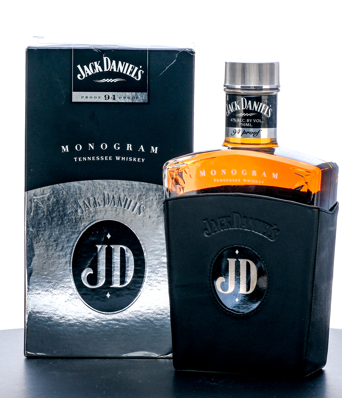 From The Collection of Michael Aronoff: Jack Daniel’s Monogram Tennessee Whiskey (2004). 47% ALC/VOL. Cardboard box is in good condition (exhibiting creasing throughout, most prominently by the lid). Plastic seal intact. Black sleeve excellent. Printed labels likewise excellent. 750ml. Distilled and bottled by Jack Daniel Distillery.