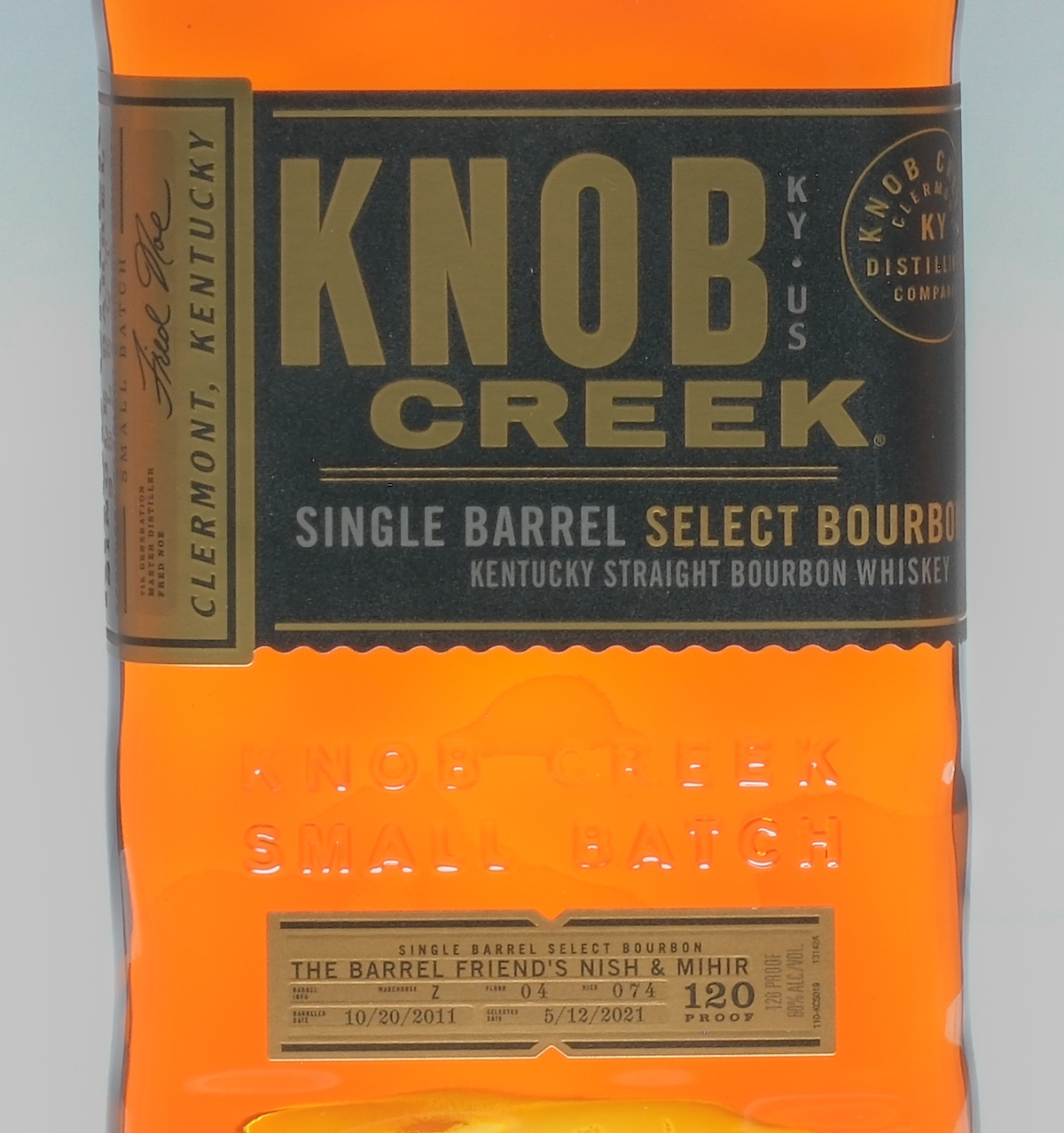 Selection by The Barrel Friend’s Nish & Mihir. Barrel info: Warehouse Z, Floor 04, Rick 074. Barreled date: 10/20/2011. Selected date: 5/12/2021. 120 Proof. 60% ALC/VOL. Wax seal intact. Labels excellent. Whiskey Bourbon Knob Creek USA Kentucky 2021 10 year old 1 750ml
