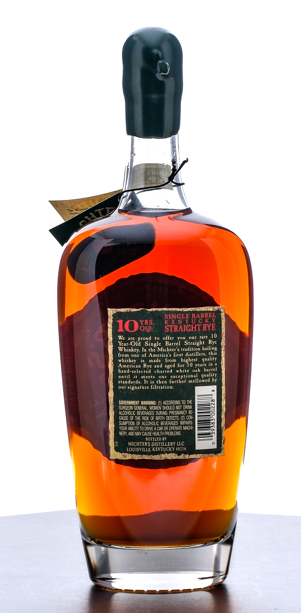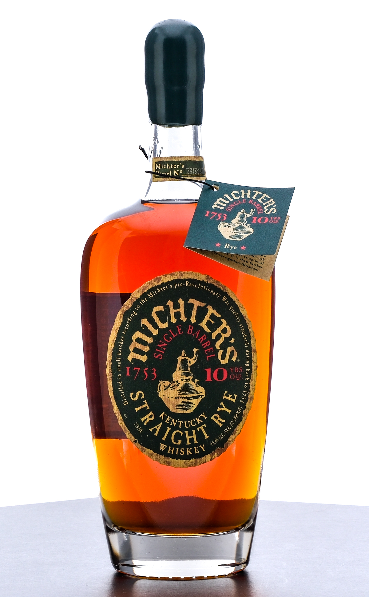 Michter’s Single Barrel 10 Year Kentucky Straight Rye Whiskey. Michter’s Barrel No.23I3150. 46.4% ALC/VOL (92.8 Proof). Wax seal intact. Printed labels excellent. Hangtag intact. 750ml. Bottled by Michter’s Distillery.