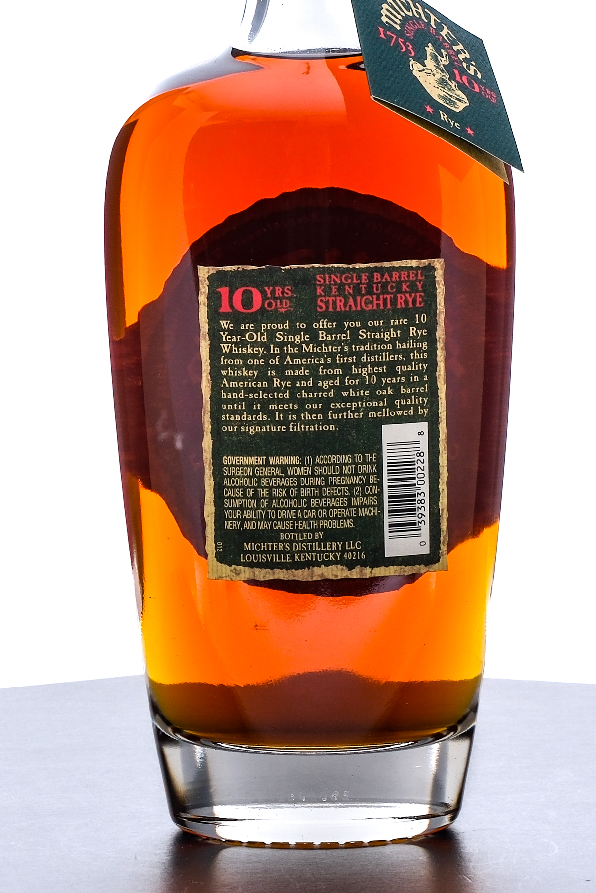 Michter’s Single Barrel 10 Year Kentucky Straight Rye Whiskey. Michter’s Barrel No.24H3085. 46.4% ALC/VOL (92.8 Proof). Wax seal intact. Printed labels excellent. Hangtag intact. 750ml. Bottled by Michter’s Distillery.