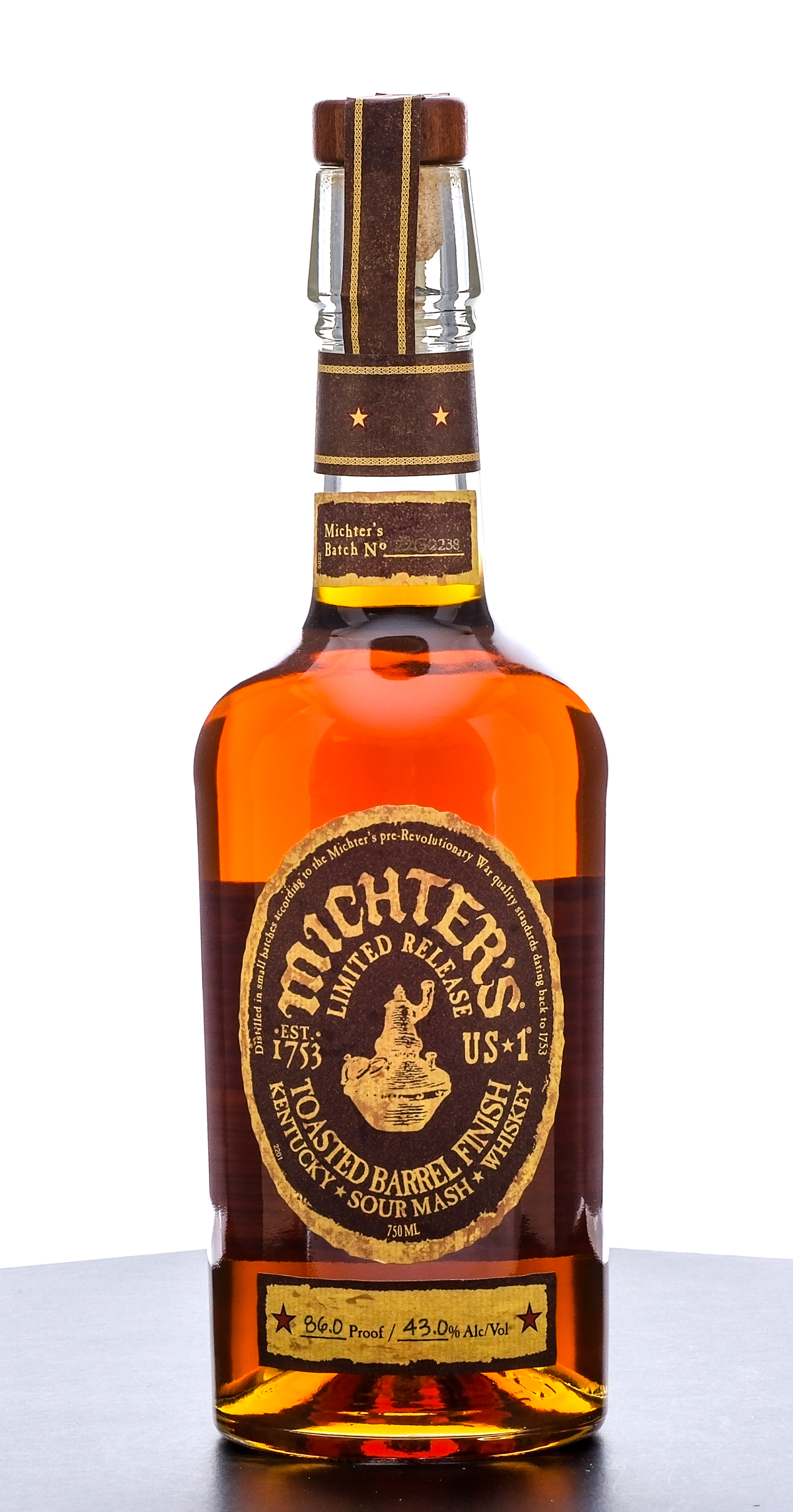 Michter’s US-1 Toasted Barrel Finish Kentucky Sour Mash Whiskey (2023). Limited Release. Batch No. 23G2238. 43% ALC/VOL (86 Proof). Stamp seal intact. Printed labels excellent. 750ml. Bottled by Michter’s Distillery.