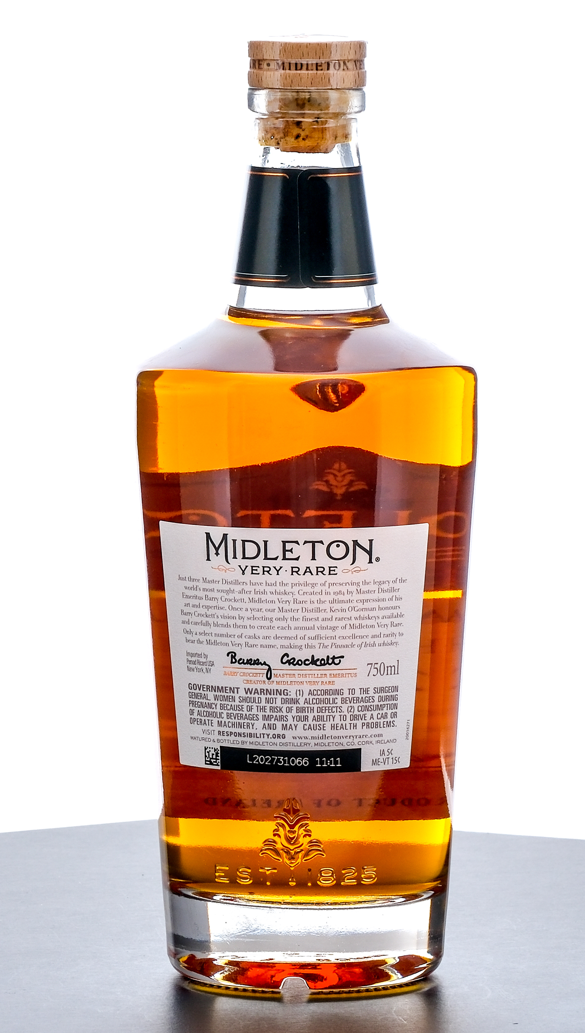 Midleton Very Rare Vintage Release Irish Whiskey (2022). Serial Number 13737. 40% ALC/VOL (80 Proof). Wooden presentation box excellent. Housed within cardboard shipping box (with handwritten notes in marker on lid and side panel) and protective bag. Includes informational pamphlet. Plastic seal on bottle intact. Printed labels excellent. 750ml. Matured & bottled by Midleton Distillery. Imported by Pernod Ricard USA (New York, NY).