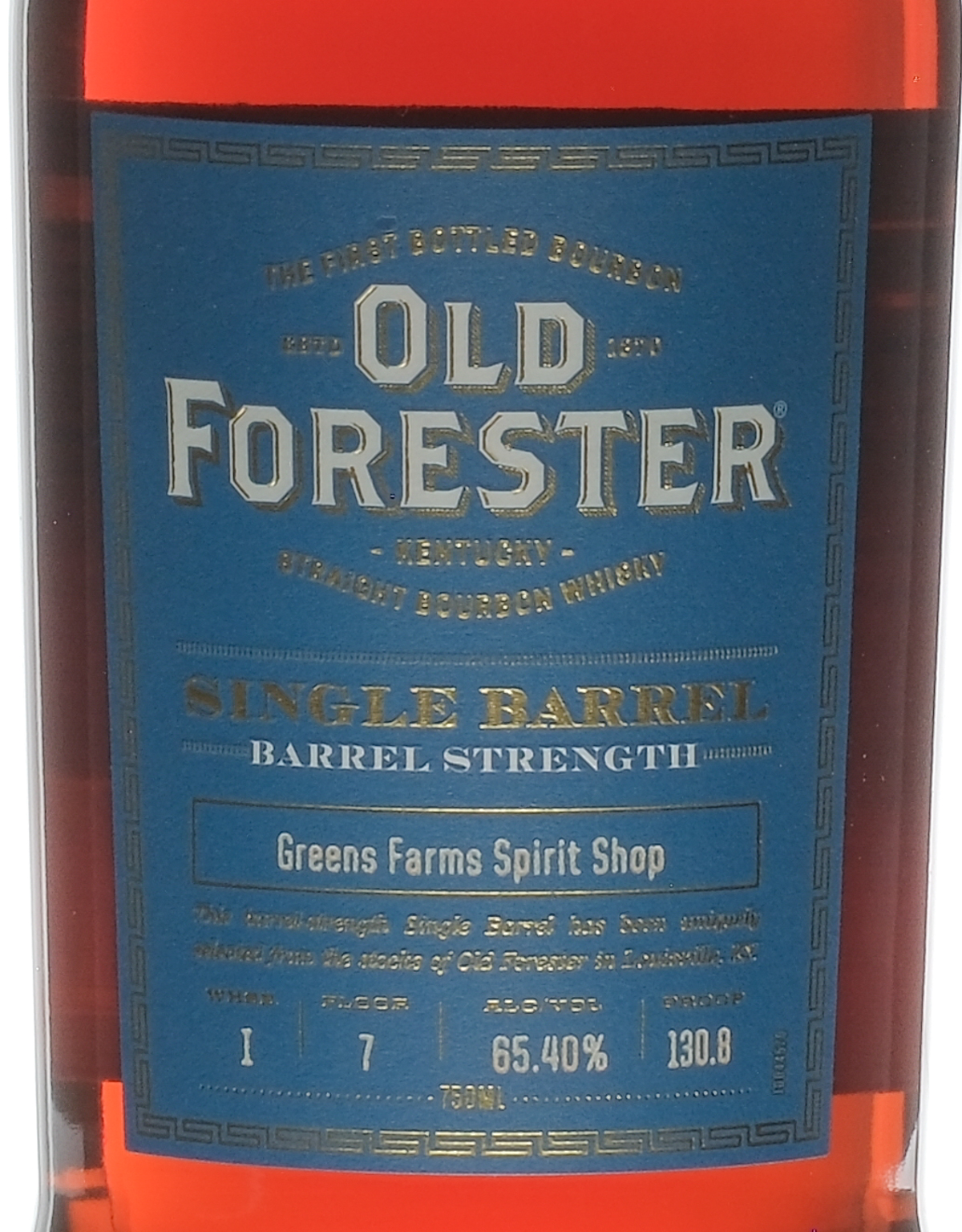 Barre Strength Selection by Greens Farms Spirit Shop (Westport, CT). Barrel strength. Warehouse I. Floor 7. 130.8 Proof. 65.40% ALC/VOL. Seals intact. Whiskey Bourbon Old Forester USA Kentucky 2023 1 750ml