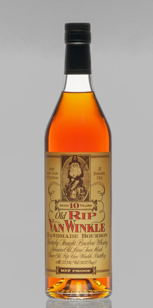 Alc. 53.5%/Vol. (107 Proof). Labels and foil excellent. Laser code L21195 01 1448D Whiskey Bourbon Old Rip Van Winkle USA Kentucky 2021 Aged 10 Years 1 750ml