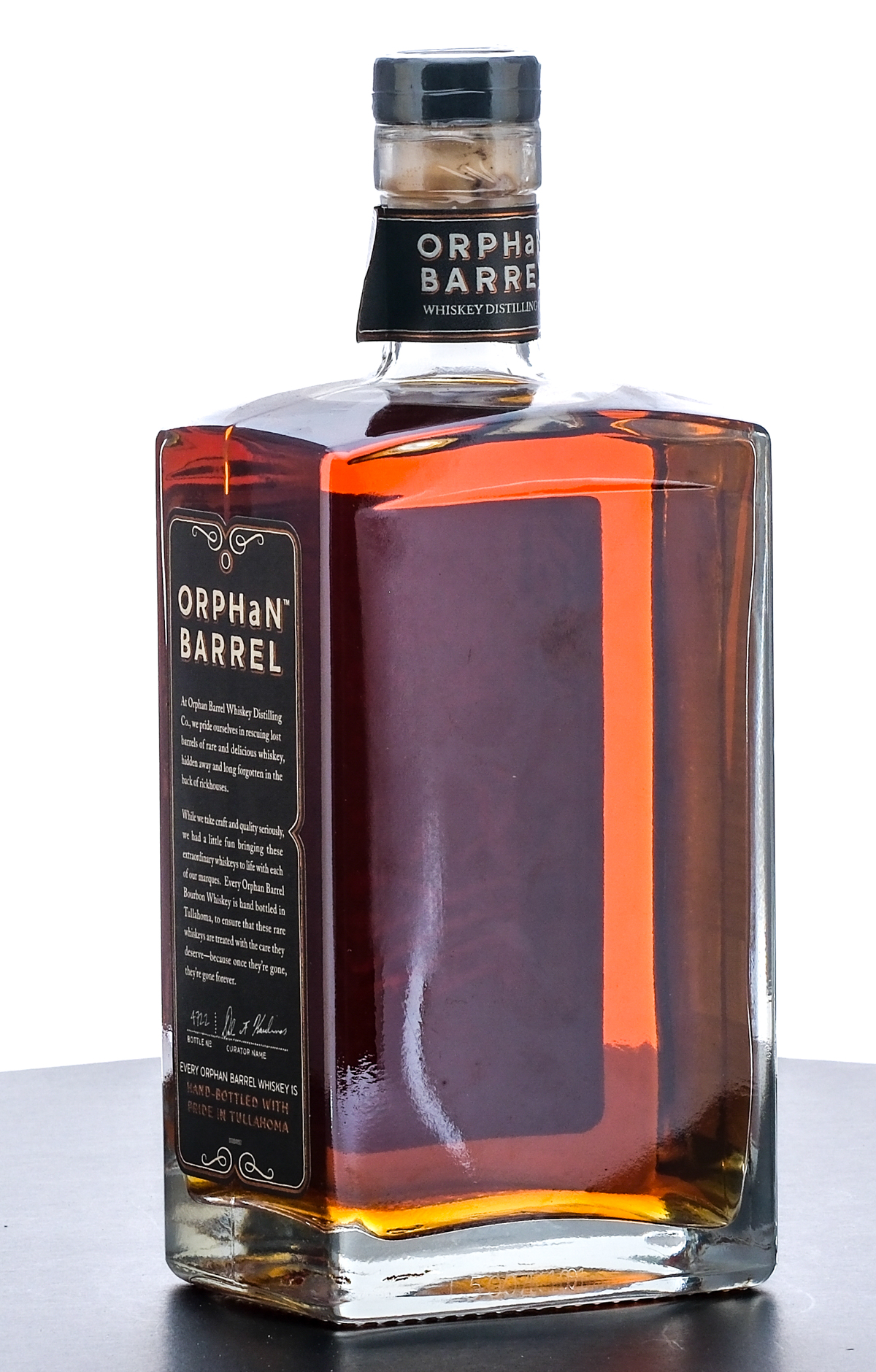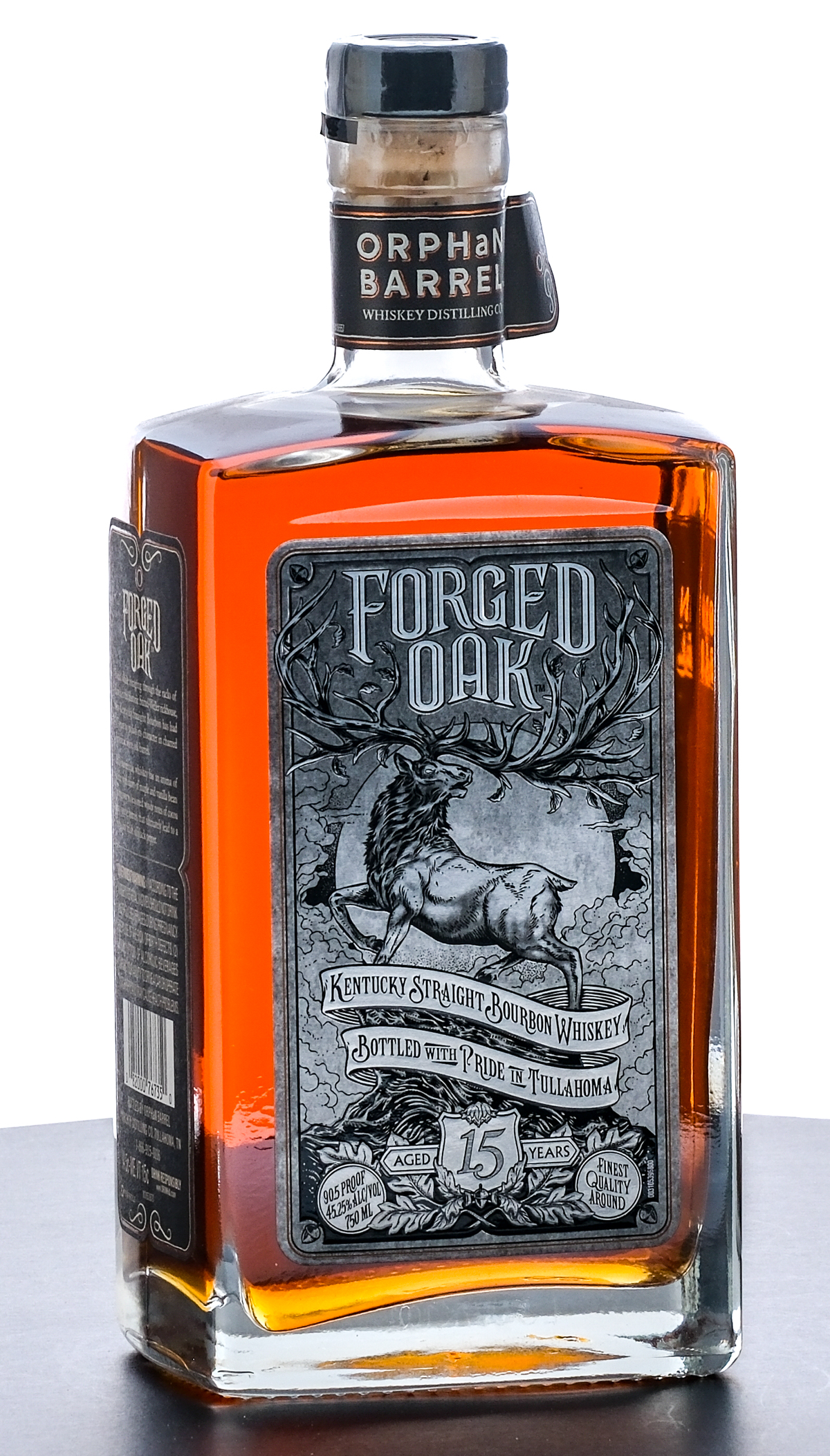 Orphan Barrel Forged Oak 15 Year Kentucky Straight Bourbon Whiskey (2015). Origins from the Stitzel-Weller rickhouse. Bottle No. 4722. 45.25% ALC/VOL (90.5 Proof). Plastic seal intact. Printed labels excellent. 750ml. Bottled by Orphan Barrel Whiskey Distilling Co Tullahoma, TN.