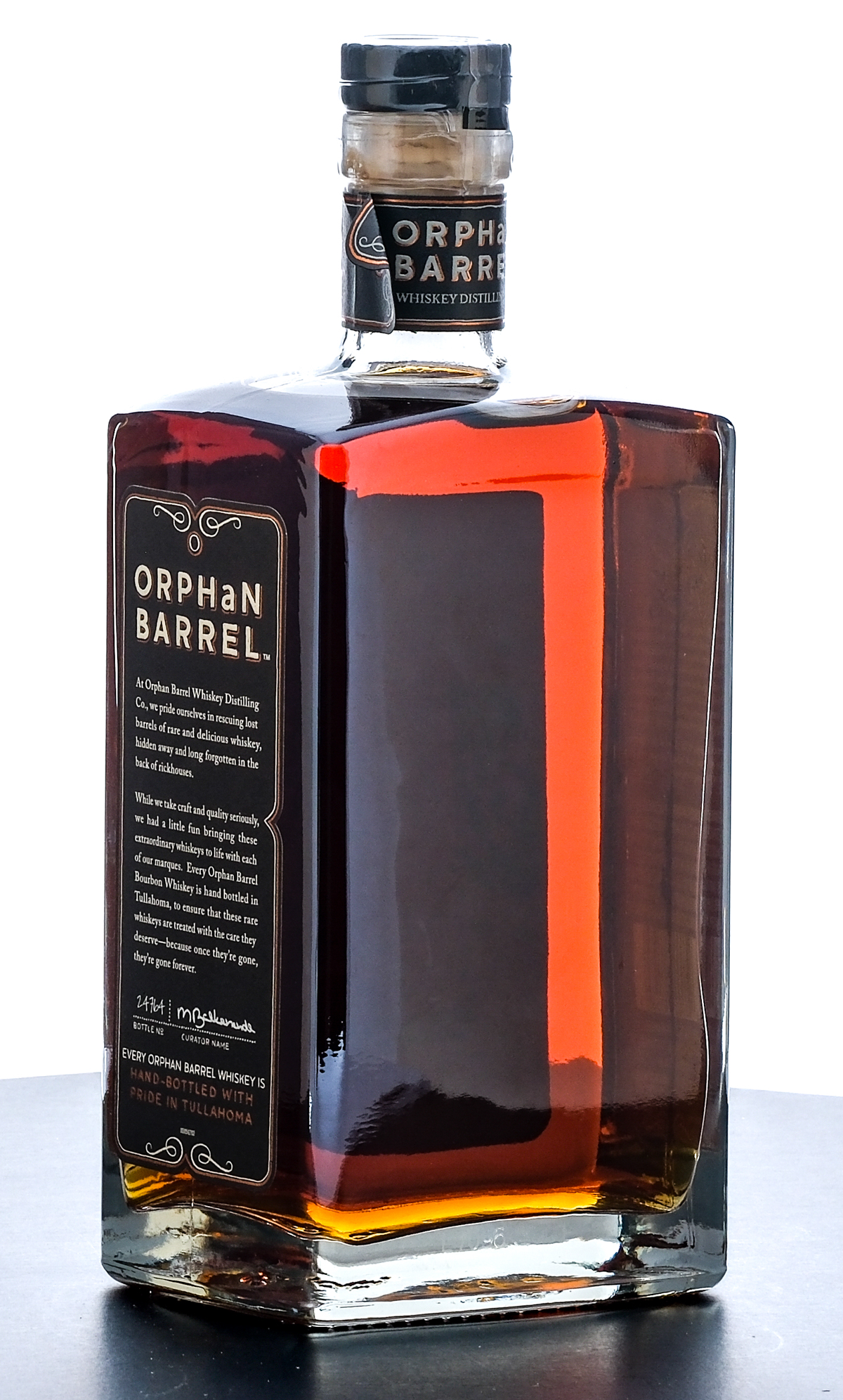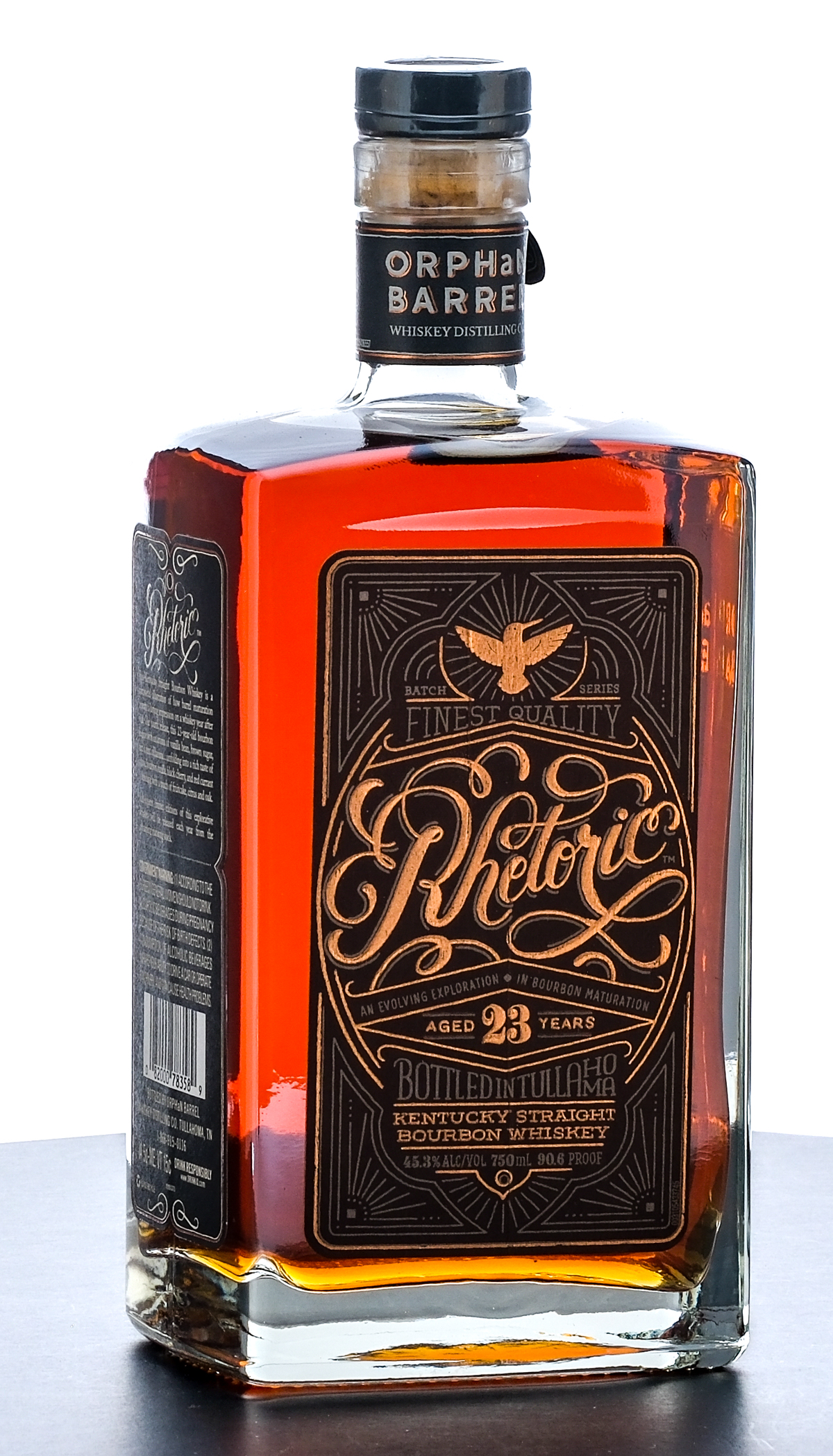 Orphan Barrel Rhetoric 23 Year Kentucky Straight Bourbon Whiskey (2017). Bottle No. 24764. 45.3% ALC/VOL (90.6 Proof). Plastic seal intact. Printed labels excellent. 750ml. Bottled by Orphan Barrel Whiskey Distilling Co.