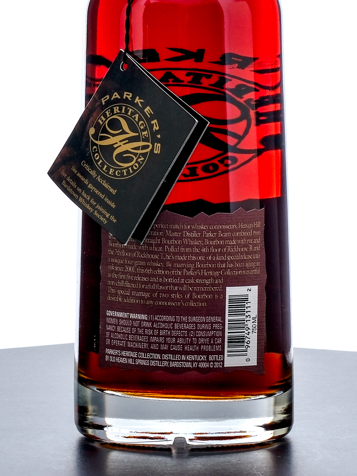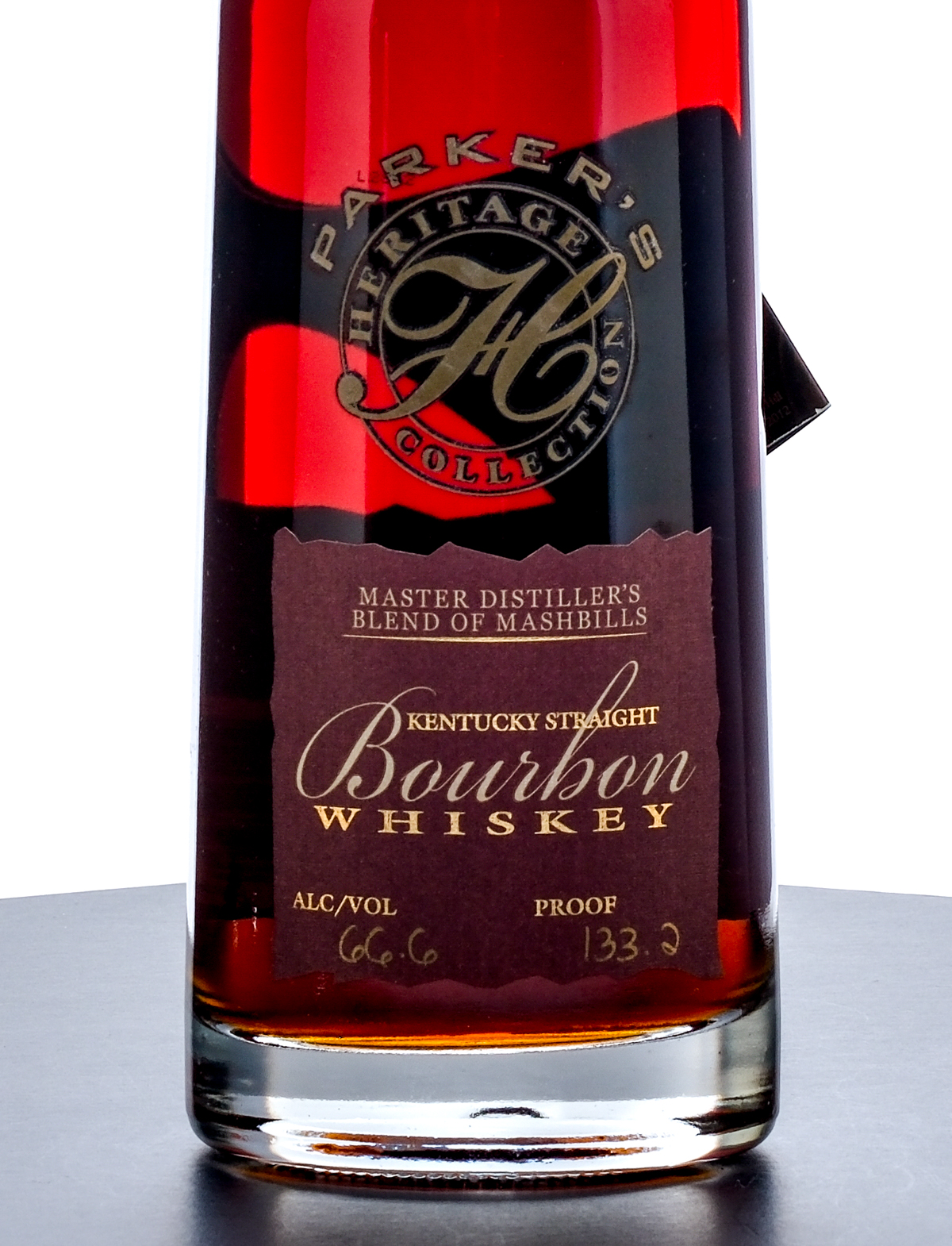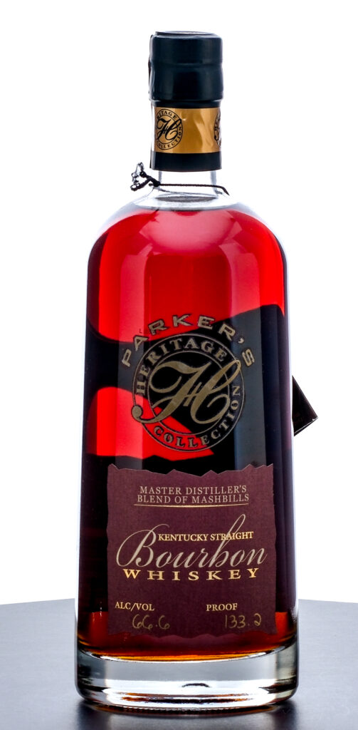 From The Collection of Michael Aronoff: Parker’s Heritage Collection Sixth Edition Master Distiller’s Blend of Mashbills Kentucky Straight Bourbon Whiskey (2012). Parker Beam combined Bourbon made with Rye and Bourbon made with Wheat (pulled from the 4th floor of Rickhouse R and the 7th floor of Rickhouse T respectively) to create a unique four grain Whiskey. 66.6% ALC/VOL (133.2 Proof). Foil seal excellent. Hang tag intact. Printed labels excellent. 750ml. Distilled and bottled by Old Heaven Hill Springs Distillery.