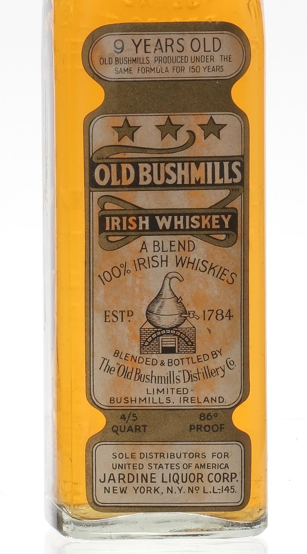 Post WWII Old Bushmills 9 Yr Irish Whiskey