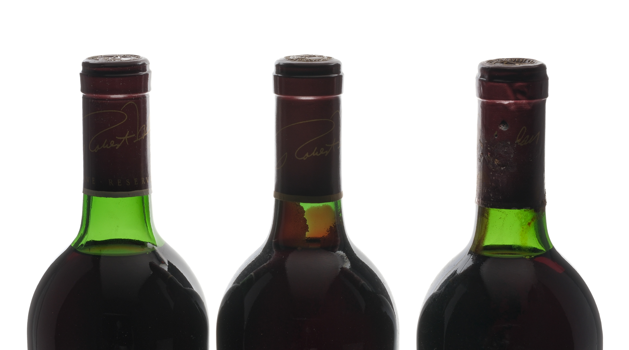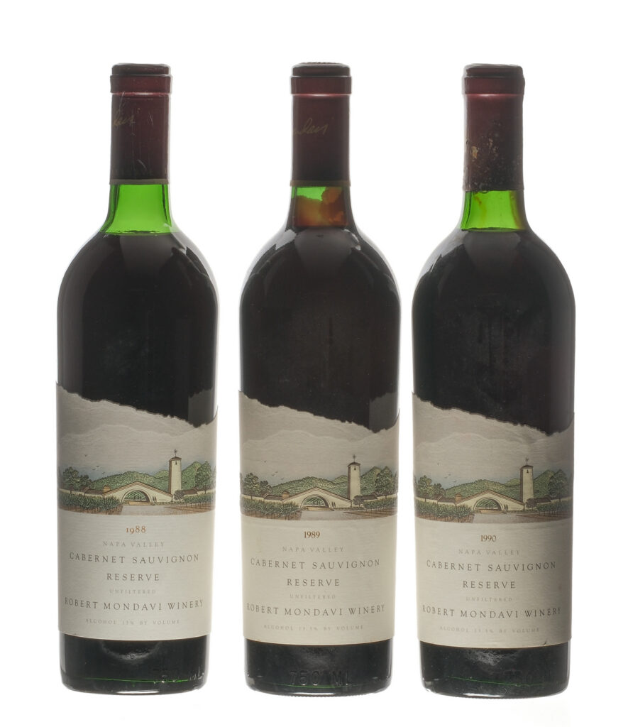 Reserve, unfiltered. Fill Level = Top Shoulder. Heavy sediment. Wine California Napa Valley Robert Mondavi Winery USA Napa Valley Cabernet Sauvignon 1988, 89, 90 3 750ml