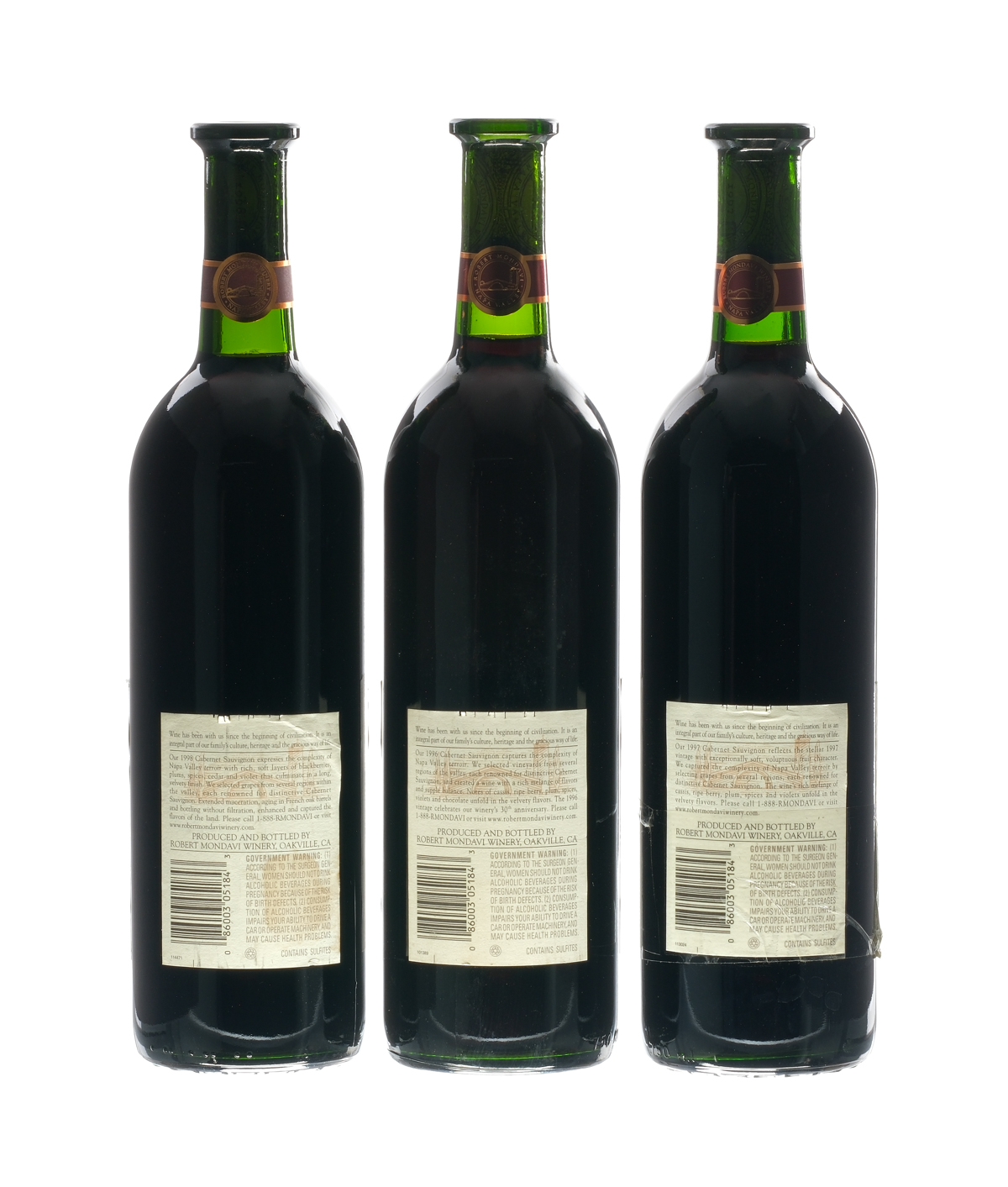 All Fill Level = Base Neck. 97 taped on label. Wine California Napa Valley Robert Mondavi Winery USA Napa Valley Cabernet Sauvignon 1996, 97, 98 3 750ml