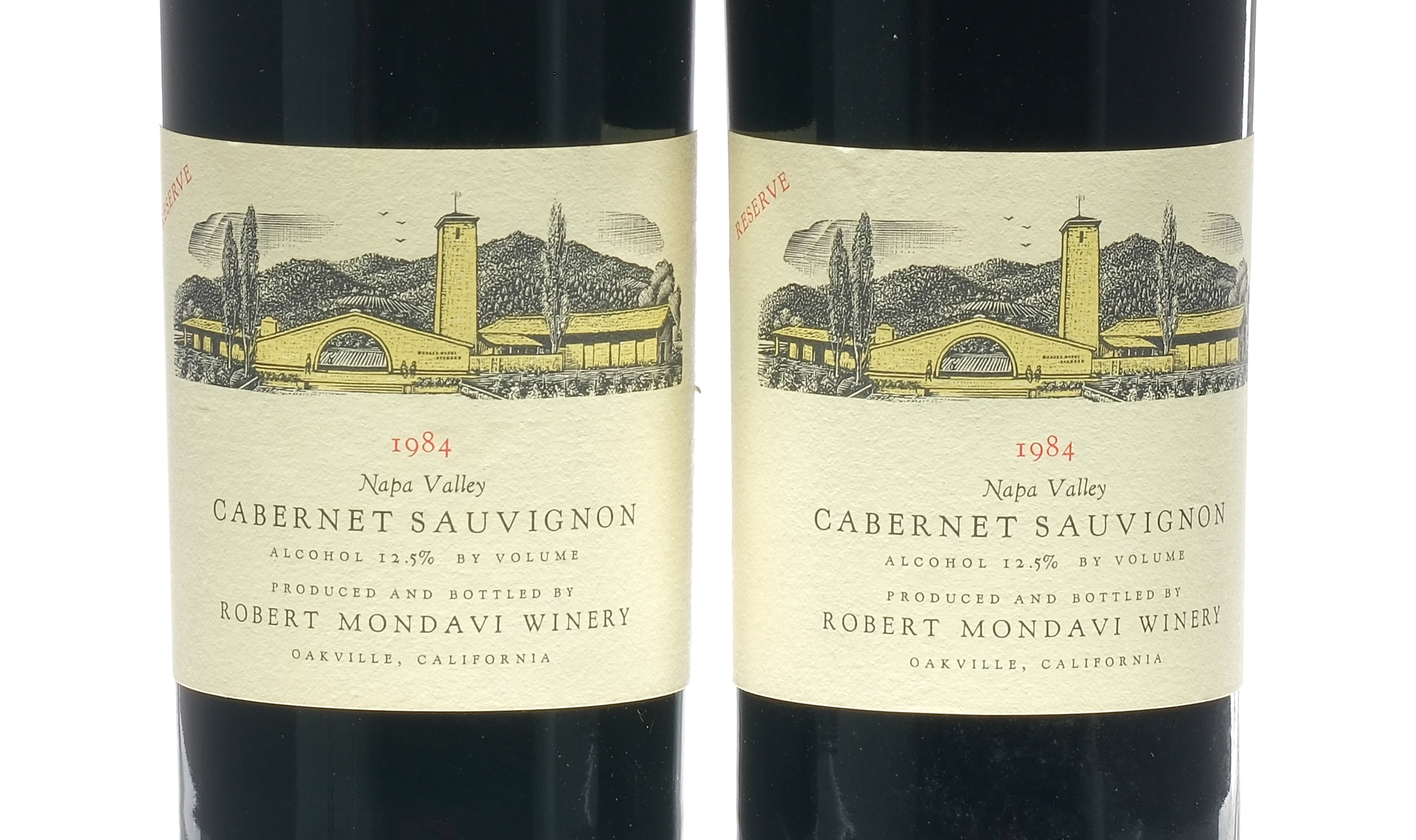 Reserve. Fill Level = Base Neck/Top Shoulder. Foil degraded. Labels VG. Wine California Napa Valley Robert Mondavi Winery USA Napa Valley Cabernet Sauvignon 1984 2 750ml