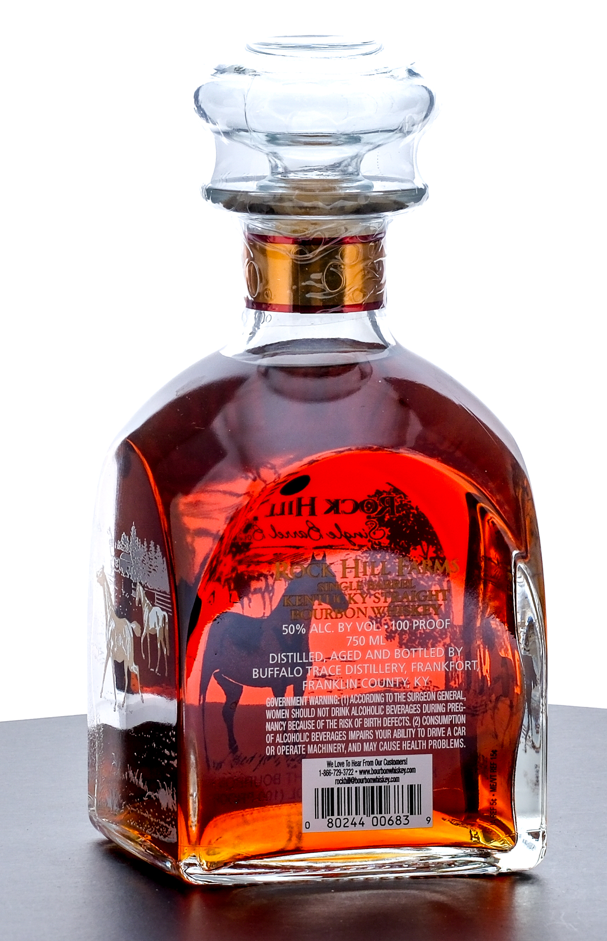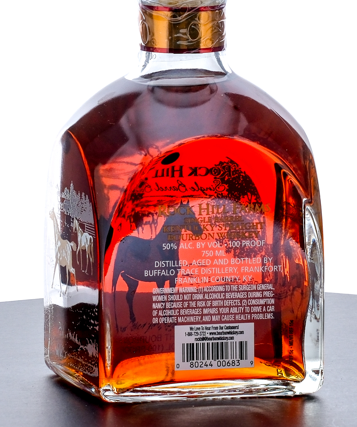 Rock Hill Farms Single Barrel Kentucky Straight Bourbon Whiskey 2023. Laser code L230170117:37K. 50%ALC/VOL (100 Proof). Plastic seal intact. Screened labels excellent. 750ml. Distilled, Aged and Bottled by Buffalo Trace Distillery.