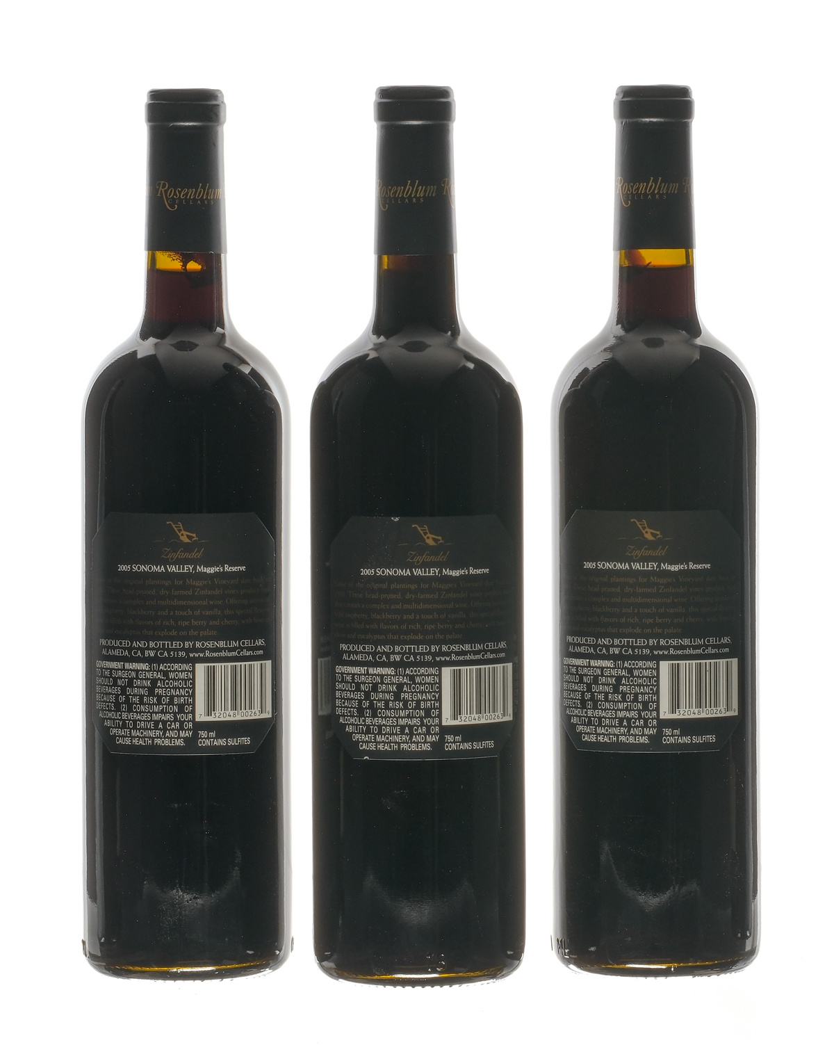 Abba Vineyard, Sonoma Valley (Maggie’s Reserve), Fill levels above Base Neck, labels excellent. Wine California Rosenblum Cellars USA California Various 2005 5 750ml