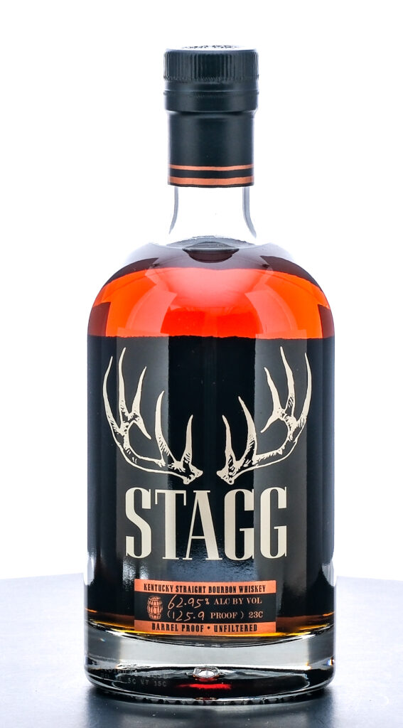 Stagg Kentucky Straight Bourbon Whiskey Barrel Proof-Unfiltered 23C (Winter 2023). 62.95% ALC/VOL (125.9 Proof). Laser Code: L23160 Q1 11:55D. Foil seal excellent. Laser and Printed labels excellent. 750ml. Distilled, Aged & Bottled by Buffalo Trace Distillery Frankfort, KY.