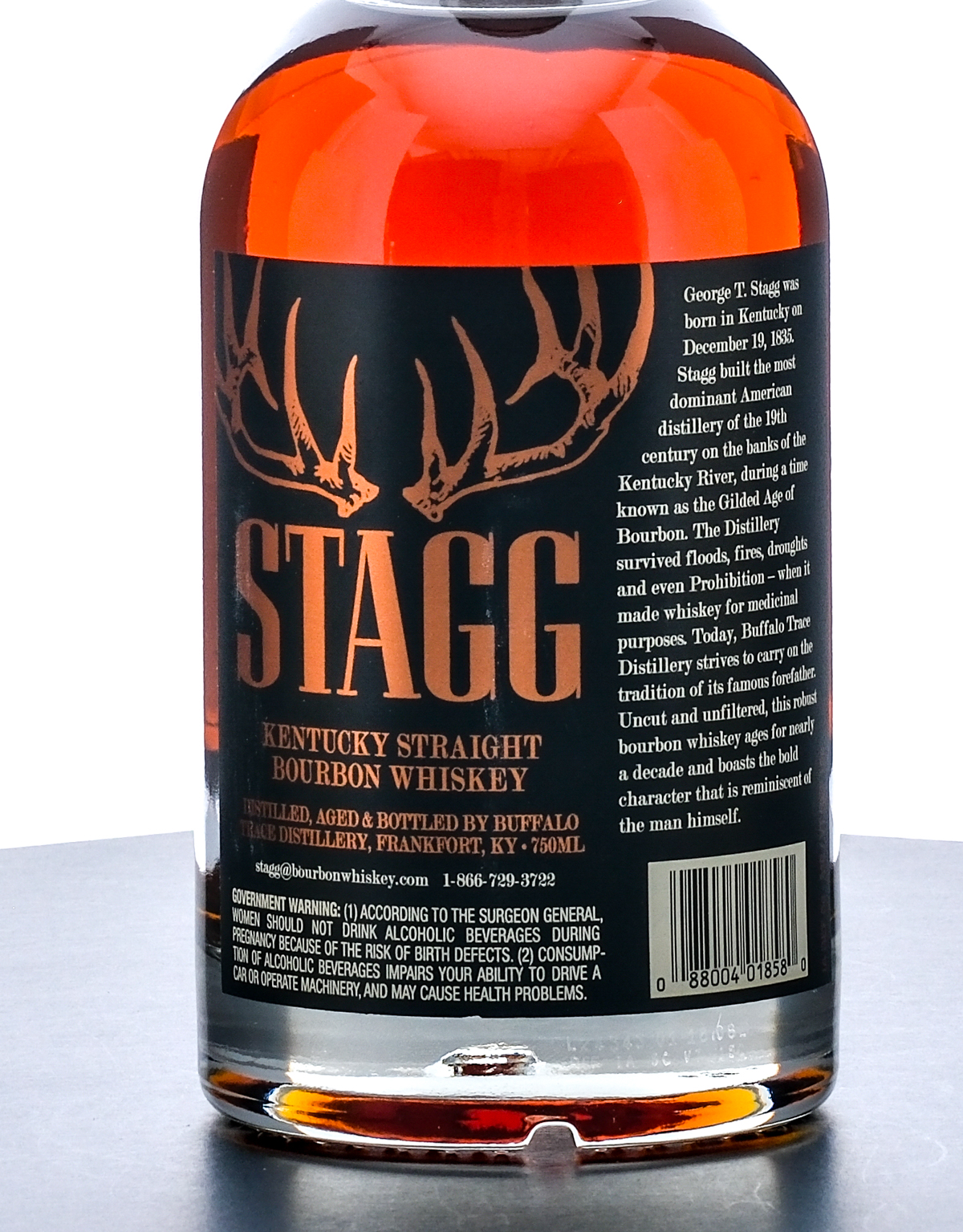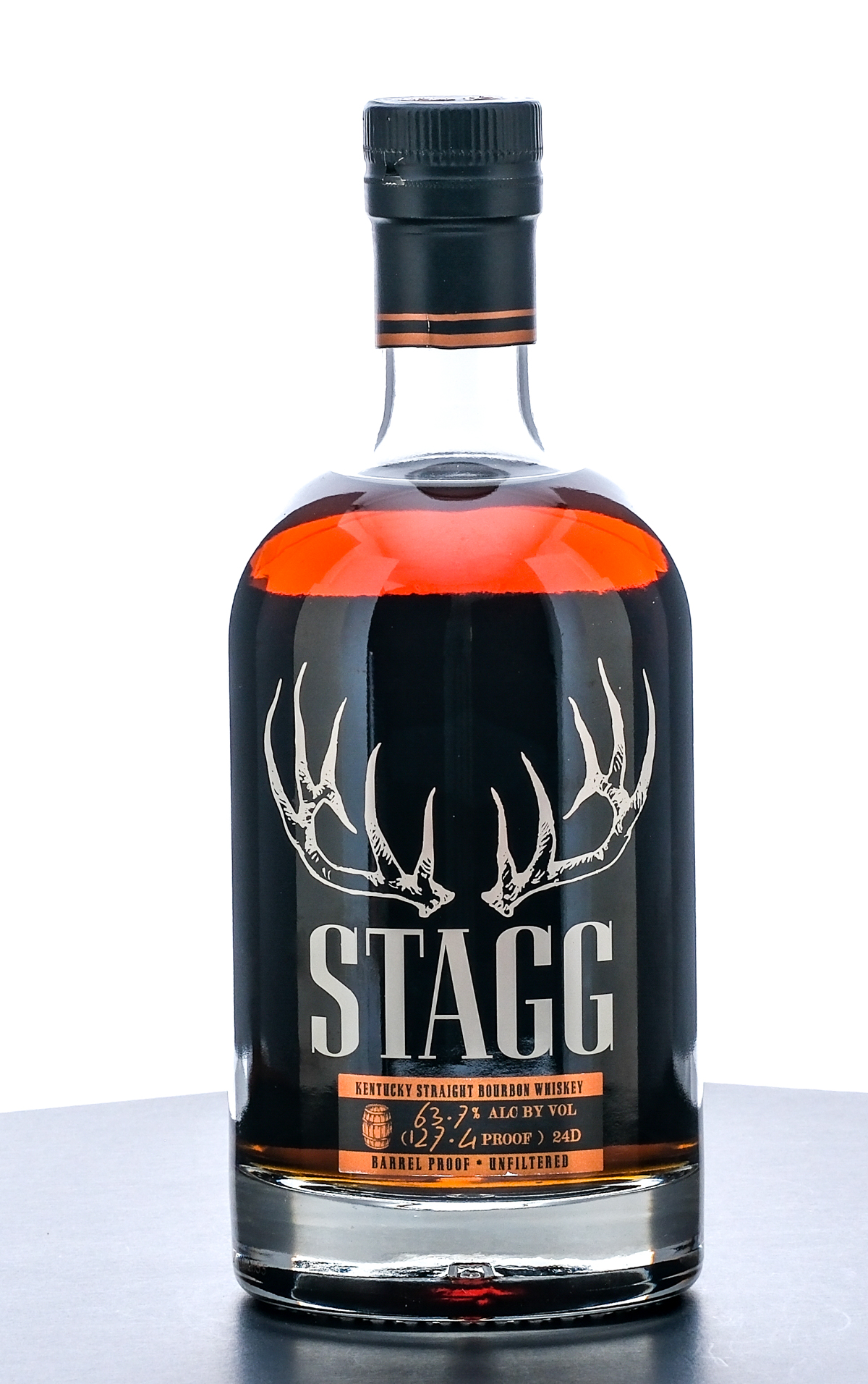 Stagg Kentucky Straight Bourbon Whiskey Barrel Proof-Unfiltered 24D (2024). 63.7% ALC/VOL (127.4 Proof). Laser Code: L24343 01 18:08D. Foil seal excellent. Laser and Printed labels excellent. 750ml. Distilled, Aged & Bottled by Buffalo Trace Distillery Frankfort, KY.