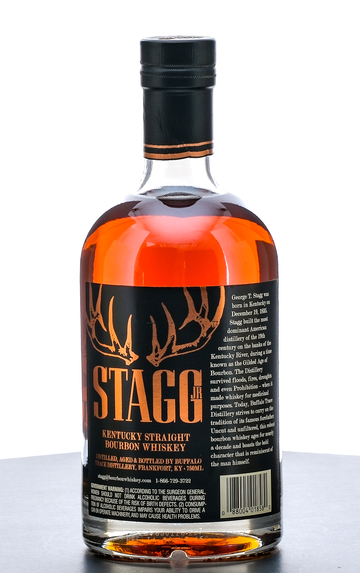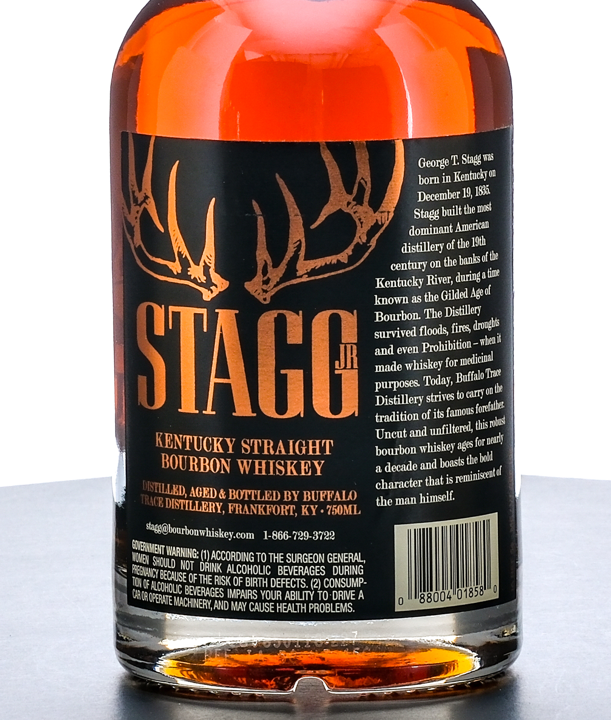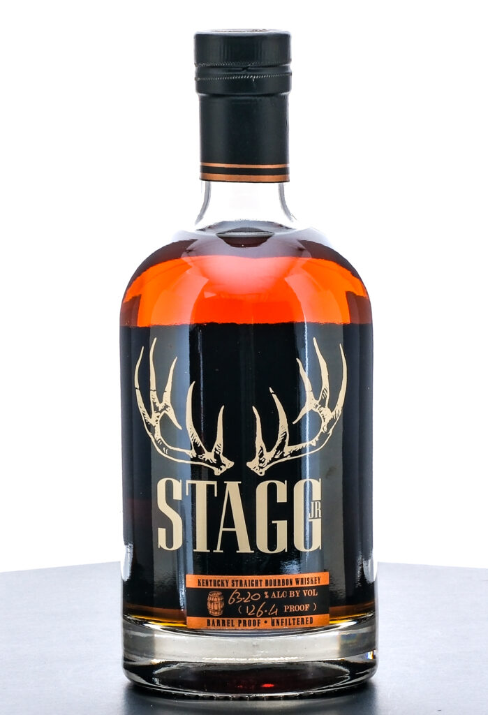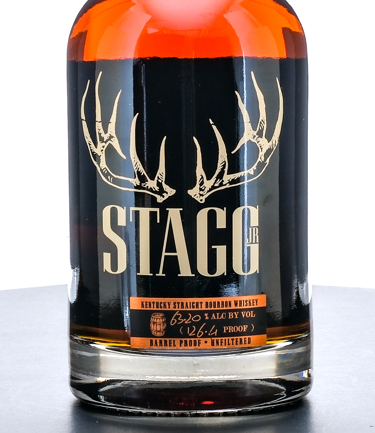 Stagg Jr. Barrel Proof, Unfiltered,  Kentucky Straight Bourbon Whiskey (Spring 2018). Batch 10. Laser code: L180850118:227. 63.20% ALC/VOL (126.4 Proof). Foil seal excellent. Screened and printed labels likewise excellent. 750ml. Distilled, aged & bottled by Buffalo Trace Distillery.