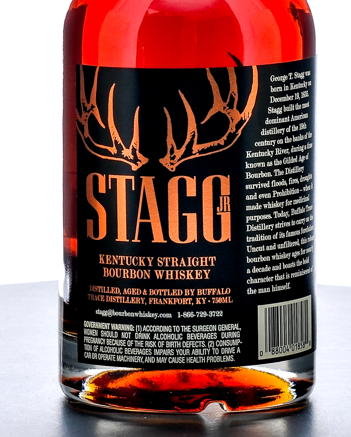Stagg Jr Kentucky Straight Bourbon Whiskey Barrel Proof. Batch 17 (Winter, 2021). Laser Code: L21257 01 22:51D. 64.35% ALC/VOL (128.7 Proof). Foil seal excellent. Printed and screened labels excellent. 750ml. Distilled, Aged and Bottled by Buffalo Trace Distillery.