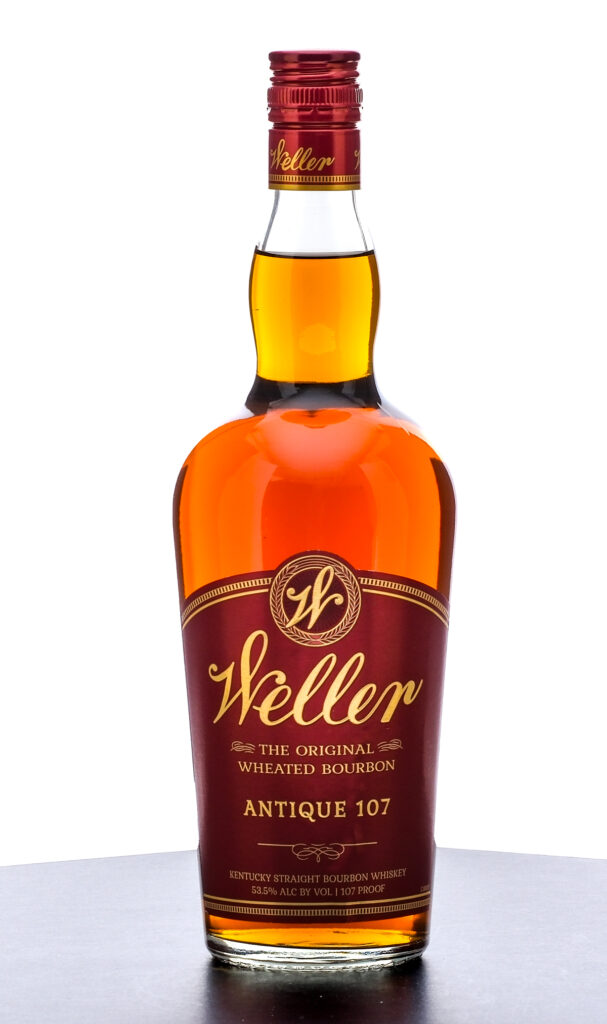 Weller Antique 107 The Original Wheated Bourbon Kentucky Straight Bourbon Whiskey (2018). Laser Code: L1808708:184. 53.5% ALC/VOL (107 Proof). Screw top seal intact. Printed labels excellent. 750ml. Distilled, Aged and Bottled by Buffalo Trace Distillery.