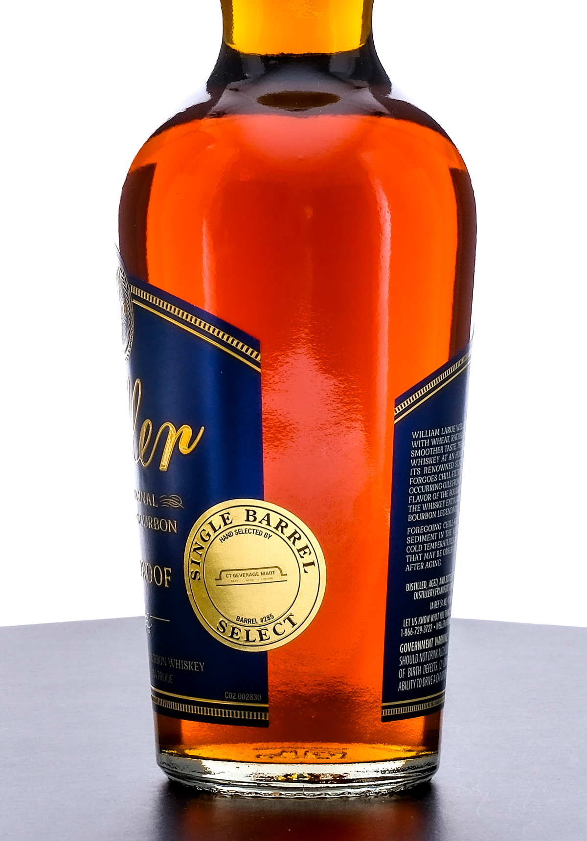 Weller Full Proof Wheated Kentucky Straight Bourbon Whiskey (2022). Single Barrel Select by CT Beverage Mart. Laser code: L2205201N09:46 57% ALC/VOL (114 Proof). Foil seal excellent. Printed labels likewise excellent. 750ml. Distilled, aged and bottled by Buffalo Trace Distillery.