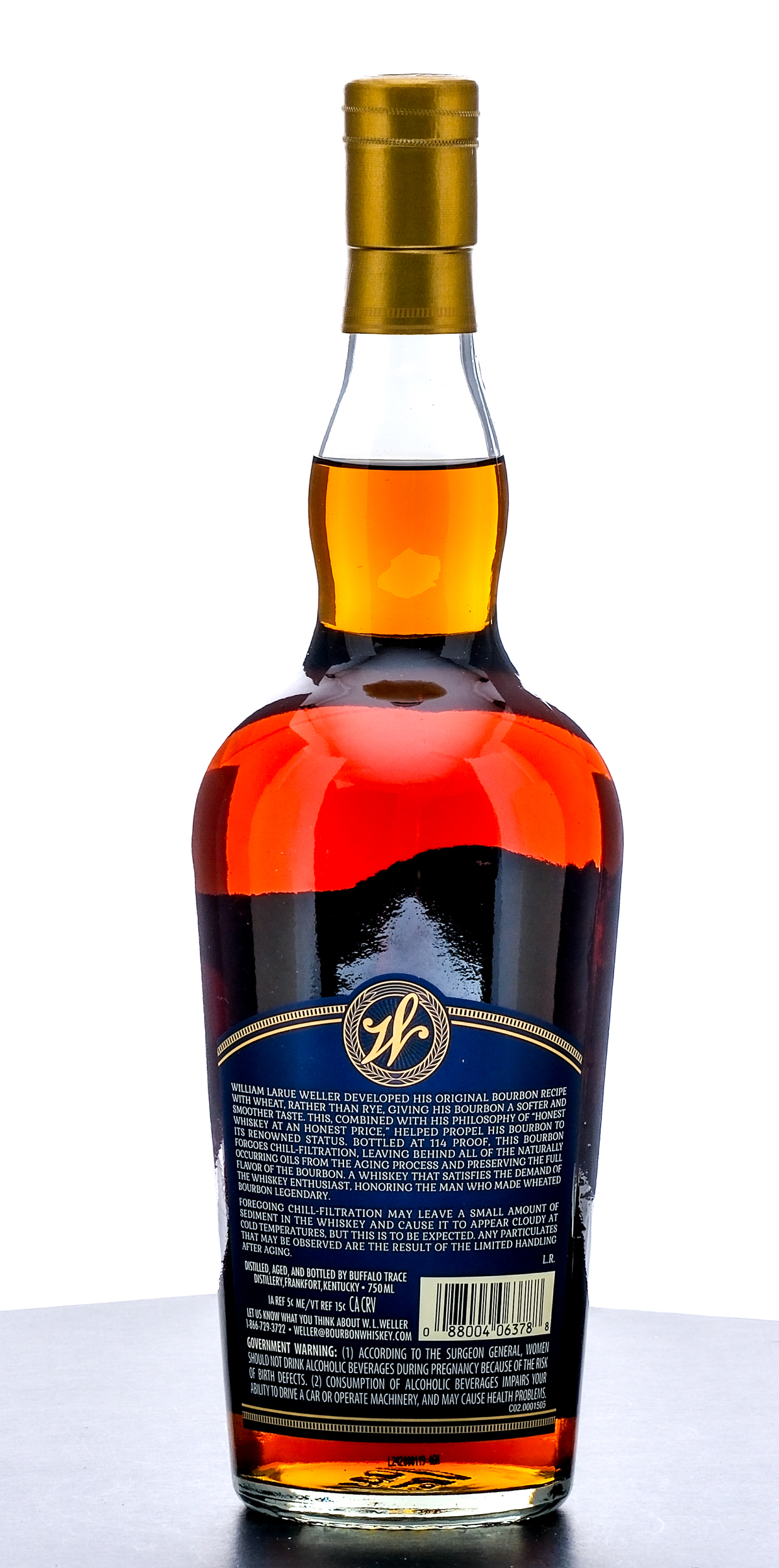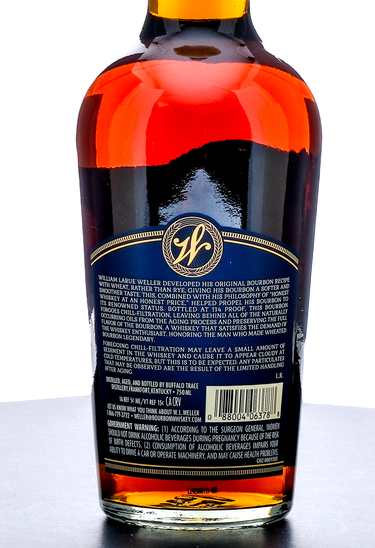 Weller Full Proof Kentucky Straight Bourbon Whiskey. The Original Wheated Bourbon. (2024). Laser code: L242000119:46N. 57% ALC/VOL (114 Proof). Foil seal excellent. Printed labels likewise excellent. 750ml. Distilled, aged and bottled by Buffalo Trace Distillery.