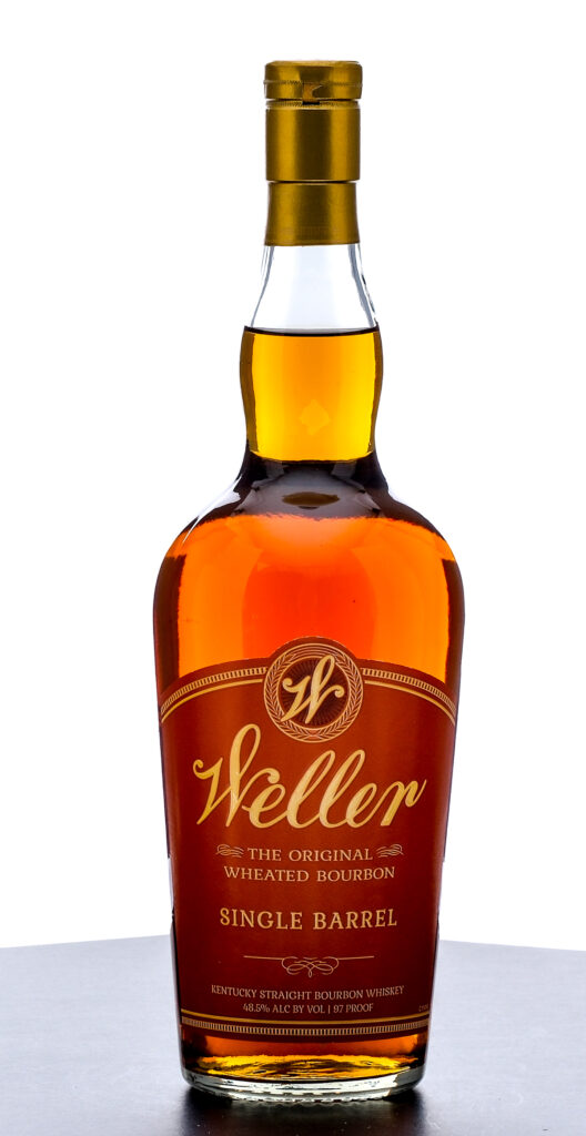 Weller Single Barrel Kentucky Straight Wheated Bourbon Whiskey (2021). Some characters in laser code are illegible: L2117…01N06:18. 48.5% ALC/VOL (97 Proof). Foil seal excellent. Printed labels likewise excellent. 750ml. Distilled, aged and bottled by Buffalo Trace Distillery.