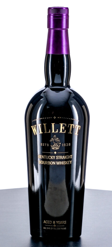 Willett 8 Year Kentucky Straight Bourbon Whiskey (2022). 54% ALC/VOL (108 Proof). Foil seal excellent. Screened labels likewise excellent. 750ml. Distilled, aged & bottled by Willett Distillery.