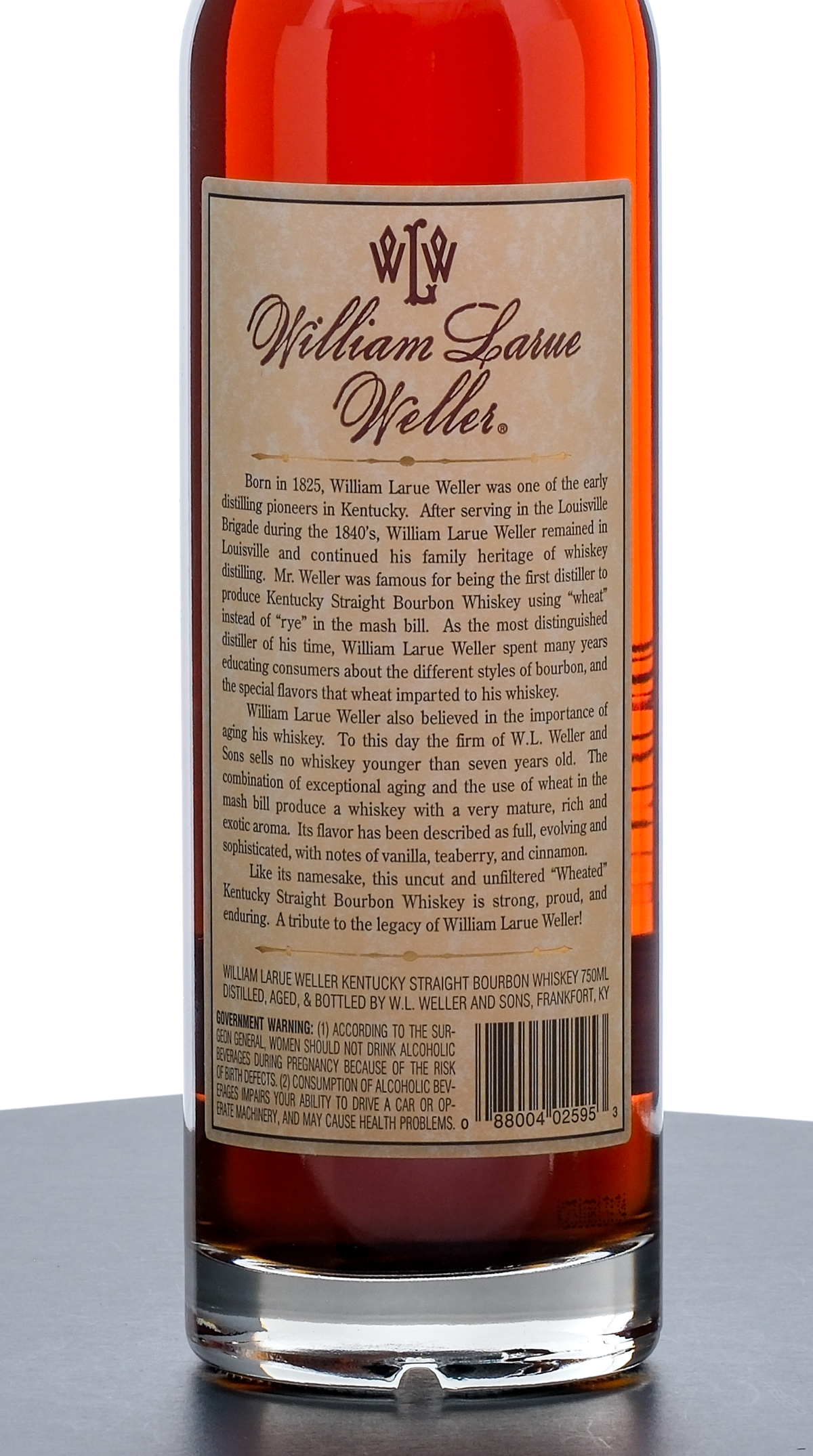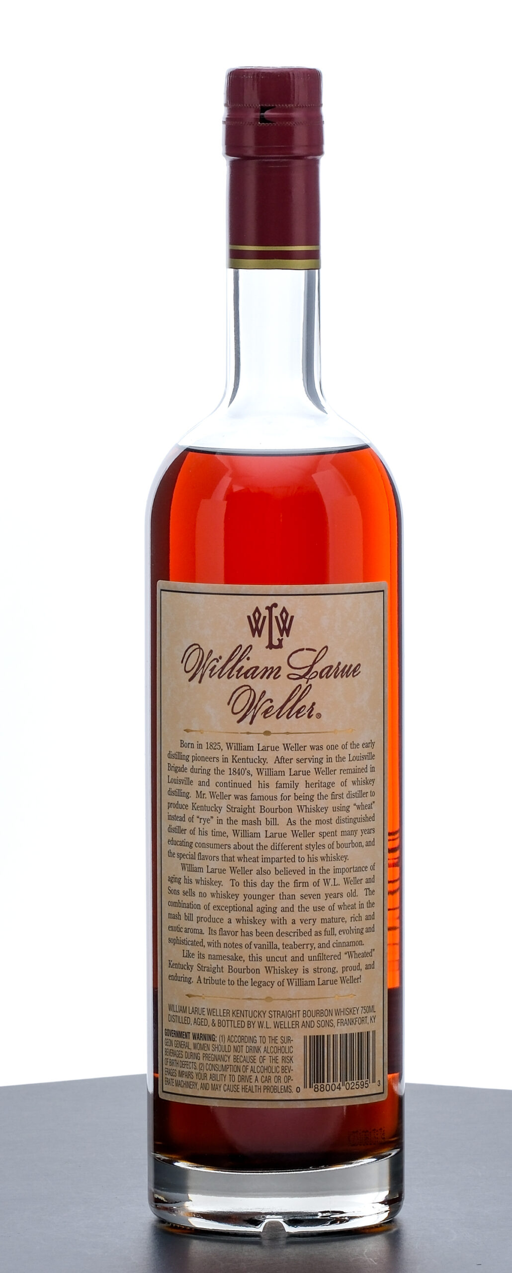 From The Collection of Michael Aronoff: William Larue Weller 11 Year Limited Edition Barrel Proof Kentucky Straight Bourbon Whiskey (2008). 62.65% ALC/VOL (125.3 Proof). Foil seal excellent. Printed and screened labels excellent. 750mL. Distilled, aged, & bottled by W.L. Weller and Sons.