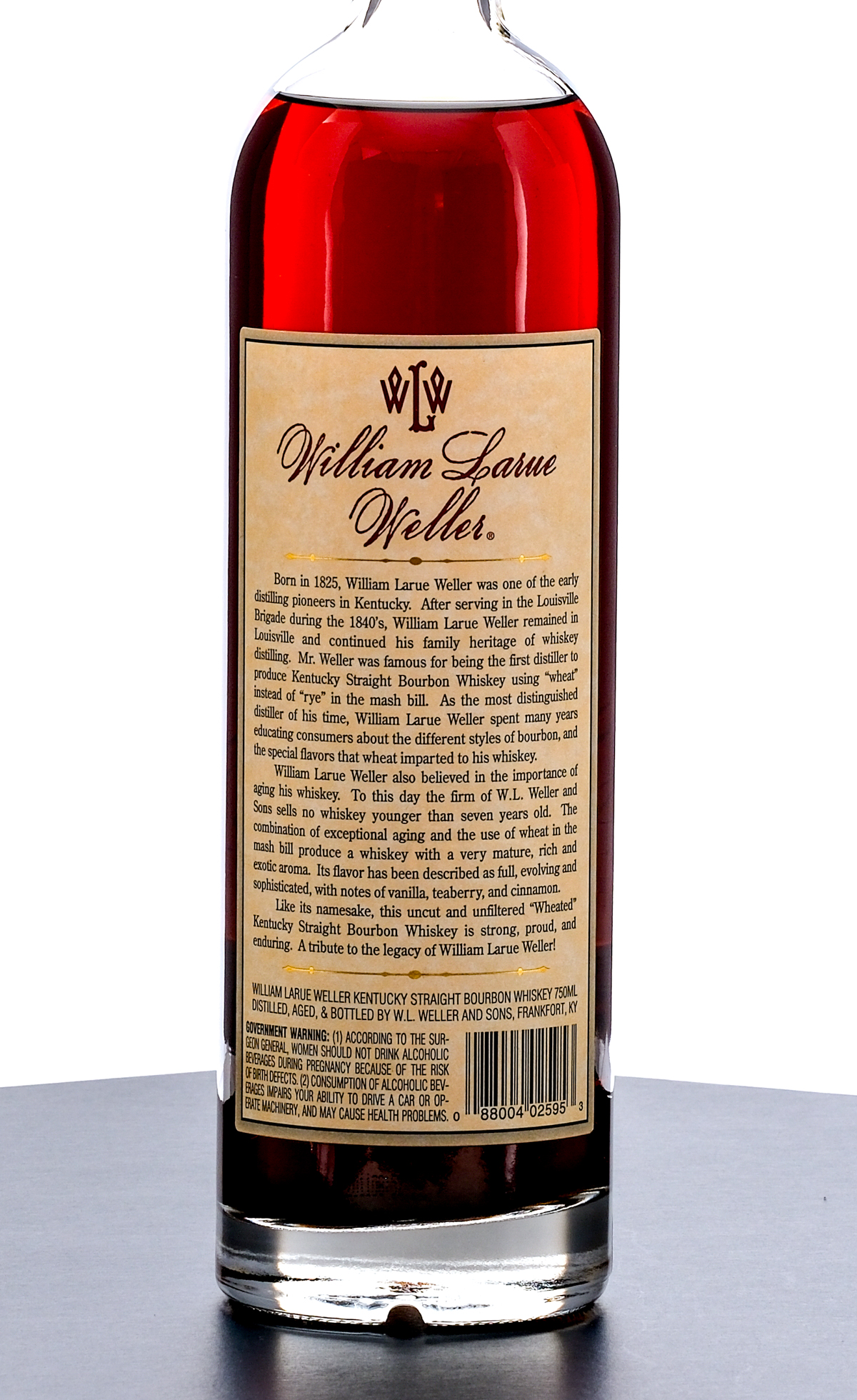 William Larue Weller Limited Edition Barrel Proof Kentucky Straight Bourbon Whiskey (2011). 66.75% ALC/VOL (133.5 Proof) Foil seal good condition, exhibiting some minor losses along top lip. Screened label also exhibits some minor losses. Printed labels excellent. 750ml. Distilled, aged & bottled by W.L Weller and Sons.